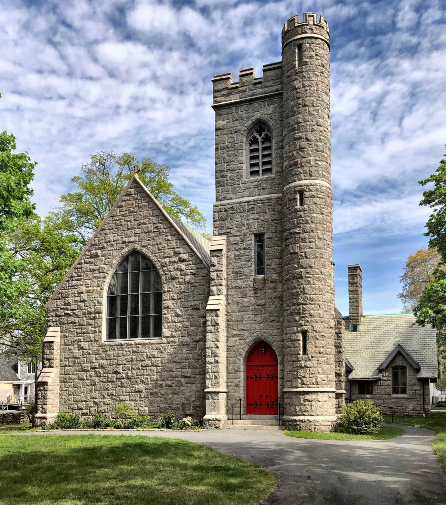 Designed in the mode of a traditional English country church, the Christ Church of Swansea is among the finest Neo-Gothic Revival edifices in New England and evokes a sense of history and tradition despite only being built in 1900. The church was funded by benefactors, Frank Shaw Stevens and Elizabeth Case Stevens, who lived down the street in the town’s largest mansion. After the death of her husband Frank, Elizabeth began a large gifting campaign to the Town of Swansea, and funded the construction of the town’s library, school, and this church (they had already funded the 1891 Town Hall). For the village church, Elizabeth hired their friend, and renowned English-born architect, Henry Vaughan, who designed the building with heavy granite walls, lancet windows and a facade dominated by an entry tower with rounded corner all capped by battlements. The Christ Church of Swansea resembles an old Medieval English church but in a New England village, amazing work as always Mr. Vaughan!
