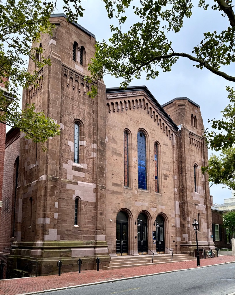 The United Church of Christ in Swansea, Massachusetts, was built in 1833 as the second building for the congregation which was originally organized in 1693. It is believed that this was the first church in New England to admit all Christians to membership regardless of their theological beliefs, as a United or Union church. The congregation’s first meetinghouse was built prior to 1719 and was replaced in 1833 when the current building was completed. The United Church of Christ in Swansea blends Greek and Gothic Revival styles with traditional wood-frame construction and gable roof with multi-stage steeple. The facade is adorned with pilasters and louvered lancet arches, showcasing the builder’s ability to pull from multiple architectural styles for the construction.