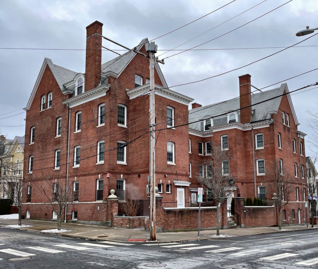 Apartment buildings get a bad rap, largely because of the cheaply built monstrosities built after WWII through today; but apartment buildings can be dignified and fit within their surrounding context, it just takes good design. These are the Cushing Apartments at Thayer and Bowen streets in Providence’s College Hill neighborhood. The building was constructed in 1902 for owner, Stephen Cushing Harris, from plans by young architect Frederick Ellis Jackson (1879-1950), who would have been in his mid-20s when he designed it! While not an academic example of the Tudor or Colonial Revival styles, the building blends both in a unique U-shaped form. The building is supposedly wood-frame and was eventually purchased by Brown University in 1963. The college renovated the building in 2012 to serve as an upperclassman dormitory with LBB Architects and Gilbane Construction overseeing the project. The building adds a subtle density to the block without being overbearing with the courtyard design.