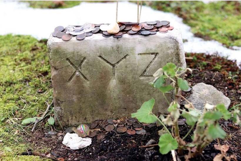 Another interesting story in the cemetery is the mysterious ‘XYZ’ gravestone. Legend says that in the evening of December 13, 1899, an unnamed man arrived in Deep River, Connecticut (along with three other male accomplices), to rob the local bank. This unnamed individual was confronted by the night security guard with a sawed-off shotgun, firing at the robber, blowing away part of his face. The other three robbers fled, leaving their accomplice in Deep River. In the hope that someone could identify him, his body was laid out for viewing at the local funeral parlor. During this time, an anonymous letter arrived, requesting that the man be buried with the headstone only marked as XYZ. The odd request was accorded, but was never fully explained. To this day, many locals leave stones and coins at the marker in Fountain Hill Cemetery.