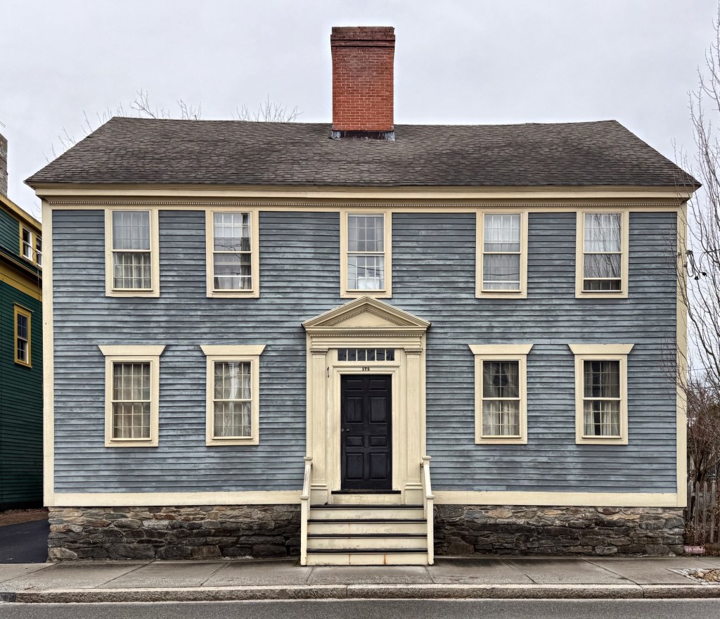 This stately two-story, five-bay Colonial house at 172 Water Street in Warren, Rhode Island, is significant as a well-preserved Georgian style residence that has connections to a prominent local family. It is unclear who originally owned the residence, but by the mid-19th century, the property was owned by John C. Hoar, a blockmaker for the maritime trade. Passed through members of the Hoar family into the mid-19″ century, owned by John Champlain Hall (1818-1912), the son of John C. Hoar, who actually changed his last name from Hoar to Hall in 1867, but it is unclear why. John C. Hall worked as a carpenter and builder in town, building homes and commercial buildings for area residents, including his own shop nearby.