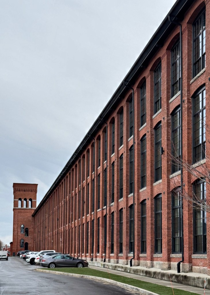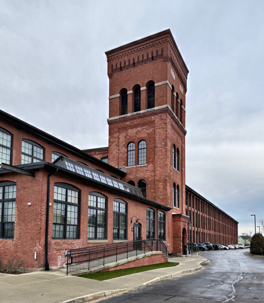 No single company had a greater impact on the town of Warren in the 19″ century than the Warren Manufacturing Company. The company built, expanded and rebuilt major mill buildings, established new streets in town, and provided mill housing for its workers, both native-born residents and immigrants who enlivened the community building new churches and housing. The company was founded in 1847, as whaling and shipping declined in Warren prior to the Civil War. Wealthy manufacturers and investors with ties to the South turned to textile manufacturing. The newly established company built three mills in the 19th century, all of which burned to the ground in a massive fire in 1895. A year later, in 1896, The Warren Manufacturing Company rebuilt this brick mill which features a handsome Romanesque tower with open belfry and brick corbelling, with a repeated pattern of pier-spandrel-and-arch construction running down the elongated facade. After the company closed, the building was occupied by the American Tourister Company, a luggage manufacturer. In 2015, the building was awarded federal and state preservation grants, and restored and adaptively reused as apartments, today known as Tourister Mill.