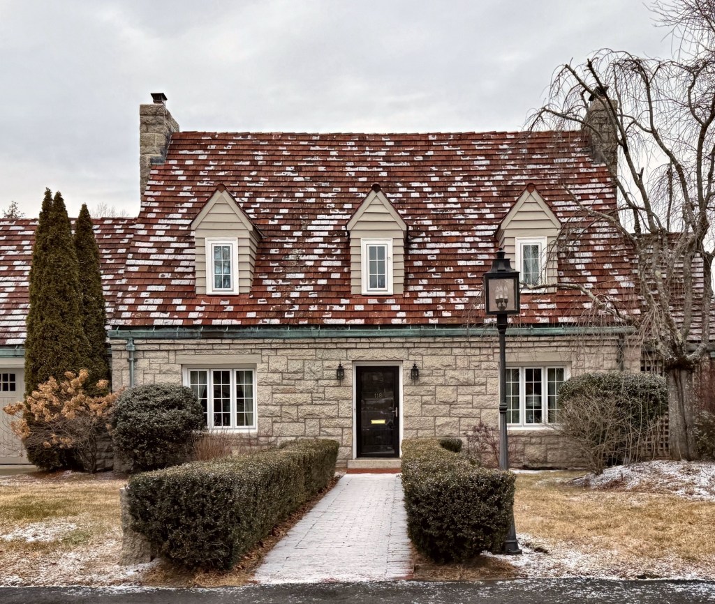 Dr. Byron Freeman Brown (1902-1962) was born in Maine and was educated at Bowdoin College before moving to Boston for medical school. After he graduated, he married and accepted a position as a doctor at Milford Hospital, not far from Hopedale, Massachusetts. Dr. Brown and his wife, Veronica, had this cottage on Adin Street built around 1930. Distinguished by its stone veneer walls and steeply pitched red clay tile roof punctuated by dormers and symmetrical facade, the Dr. Brown House is a great example of a Colonial Revival style house with Arts and Crafts flair built in the inter-war period.