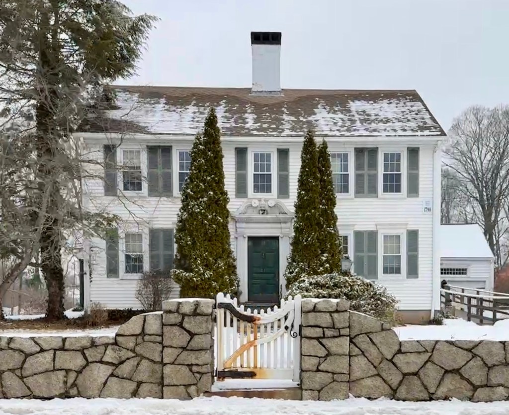 In 1787, Oliver Druce (1760-1797) married Sarah “Sally” Kollock (1764-1789) and had this large residence built overlooking the Town Common in Wrentham, Massachusetts. The young couple raised one daughter here until Sarah died in 1789 at 25 years old, followed years later by Oliver, who died in 1797 at 37 years old. By the turn of the 19th century, the late-Georgian residence was owned by John Francoeur, a French Huguenot. The Druce-Francoeur House is one of the finest Georgian style residences in Wrentham, which retains its magnificent doorway framed by fluted Ionic pilasters with broken scrolled pediment above.