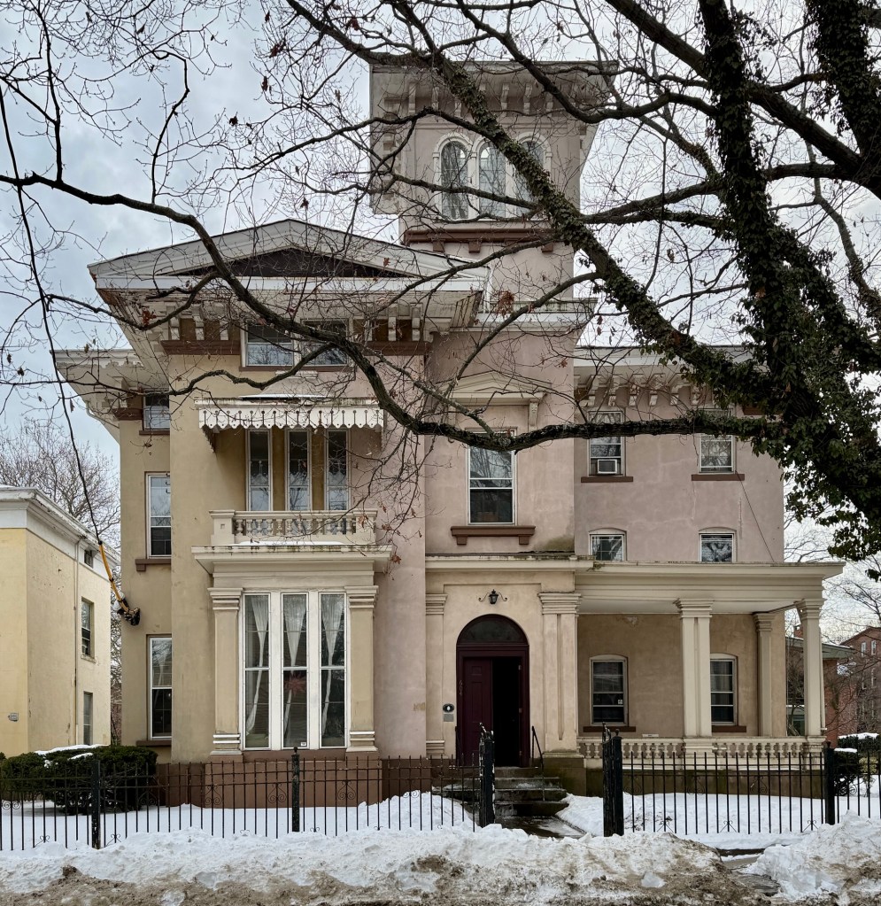 A true expression of the Italianate Villa style, the King-North House on Chapel Street in the Wooster Square neighborhood of New Haven is among the communities finest mid-19th century residences but suffers from some serious deferred maintenance. The residence was built in 1852 for Jonathan Williams King (1813-1863) a merchant who moved to New Haven from Cincinnati and hired famed Connecticut architect, Henry Austin, to design this home for him and his new bride, Ann Margaret Smith. The stuccoed mansion features a central tower, broad overhanging eaves with brackets, porches, and arched windows. After Jonathan King’s death in 1863, the property was purchased by Oliver B. North, owner of a saddlery and carriage firm. The property became a multi-family property in the 20th century and has suffered from some unsympathetic alterations and neglect, but remains a highly significant gem in Wooster Square.