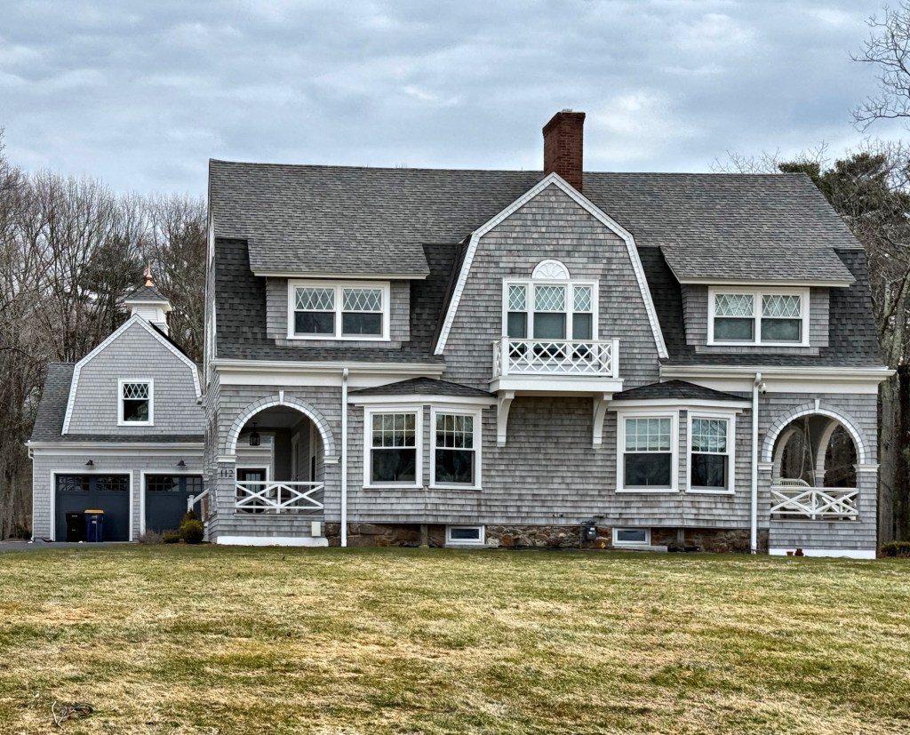 On the eastern shore of Lake Massapoag in Sharon, Massachusetts, the George P. Lawrence Summer House is an excellent and rare preserved example of a late 19th century Victorian summer house in the suburban town. The residence was built in 1897 for George Pelton Lawrence (1859-1917) and his wife, Belle, as a summer retreat from their primary residence in North Adams in Western Massachusetts. George P. Lawrence was an attorney who was appointed as a district court judge before entering the political arena where he became a state senator. The couple spent summers at this beautiful Shingle/Colonial Revival style residence until Congressman Lawrence’s death in 1917. On November 21, 1917, Lawrence jumped out of his eighth-floor New York City window at the Hotel Belmont , committing suicide. In his room, he left a note saying that he “could not stand the pressure anymore”. The Sharon property remained in the family until the 1940s and has been modernized, while maintaining its character.