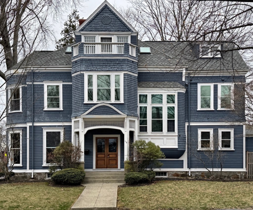 The Harrison Gardner House on Colchester Street in the Longwood section of Brookline is a stunning late Victorian residence that was “modernized” in 1887 to its current configuration. Harrison Gardner (1841-1899) was a Civil War veteran who arrived back in Boston becoming a wealthy dry goods wholesaler, later investing in Massachusetts mills. On January 20, 1871, Harrison was a founder and treasurer of the Boston Red Stockings of the new National Association of Professional Base Ball Players (NABBP). The team’s name changed multiple times, eventually landing on the Boston Braves, which would later move to Atlanta to become the Atlanta Braves in the MLB. With increased wealth and status, Harrison Gardner in 1887, hired the prestigious architectural firm of Hartwell and Richardson, to update his Brookline residence with additions and renovations in the Queen Anne and Shingle styles. Years after his death in 1899, Harrison’s widow, Laura Perkins Harrison, moved out of the large Longwood home and into a new, Arts and Crafts style stucco residence on Amory Street, designed by William Gibbons Rantoul.