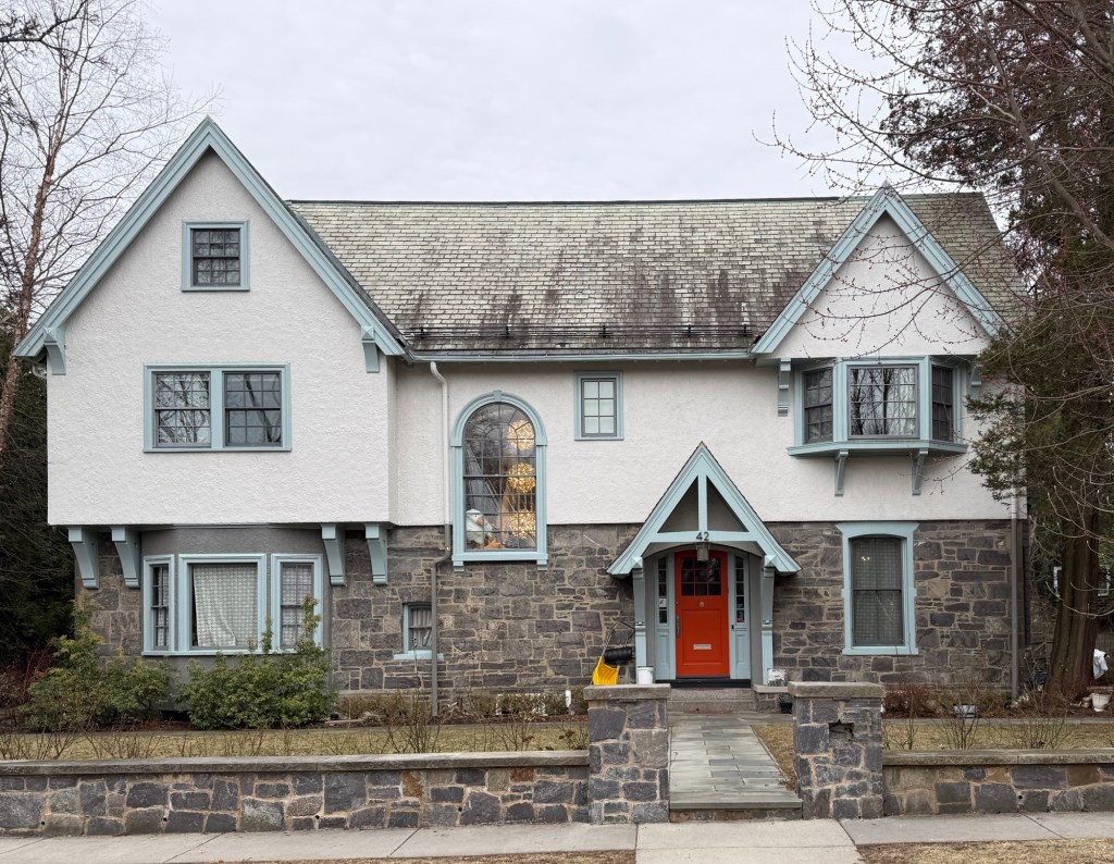 The Adolph and Marion Ehrlich House on Beech Road in Brookline’s Longwood neighborhood is a stunning blend of Arts and Crafts and Tudor Revival styles, popular in early 20th century Boston suburbs. The house was designed by the firm of Andrews, Jaques and Rantoul, for Adolph Ehrlich (1868-1952) and Marion Ratchesky Ehrlich (1877-1966). Adolph was born in Boston and at the age of 11, began work in the textile business. He climbed the ranks and became a partner in a clothing company before becoming a director of the Jordan Marsh Department Store Company from 1925 until his death in 1952. His wife Marion was heavily involved in social causes until her death, including the Louisa May Alcott Club, a settlement house in Boston for young, predominantly immigrant girls.