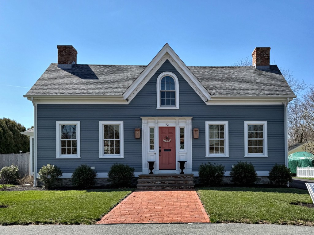 The Wellington House at 72 Main Street in Swansea, Massachusetts, is an early 19th century Federal period residence that was “modernized” in the mid-19th century into its current form. It is unclear who the original owner of the residence was, but the property was acquired by Julia and James Birch in the 1850s as they built their Italianate style mansion next-door. They modified this cottage in the Italianate style to match their home and likely rented the property to Dr. James Lloyd Wellington (1818-1916), a Harvard-educated doctor who split his time between Swansea and Cambridge. The house was later donated to the Town and rented for years with profits going to the Public Library, until it sold and was restored by area residents, with the proceeds for the sale funding the library as well.