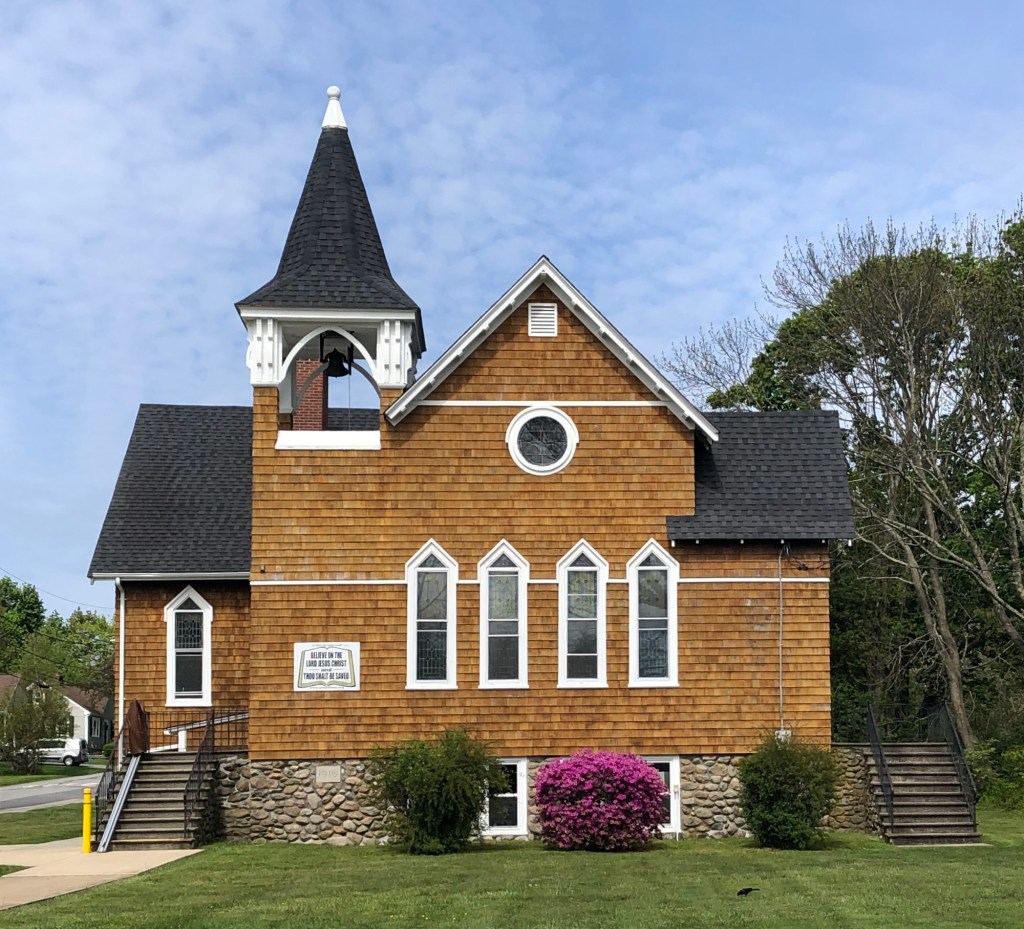 The South Swansea Union Church on Gardner’s Neck in Swansea, Massachusetts, is an excellent example of a seaside New England church that blends architectural styles in a unique composition. The church was built in 1916 years after development of the Neck began in earnest as a partnership between local congregations and the South Swansea Sunday School. The new church became a union church for multiple congregations to have a shared house of worship as well as a space for sunday school for area pupils. The building that features elements of Shingle and Neo-Gothic Revival styles, was built by William L. Hunt & Son and now houses the South Swansea Baptist Church.