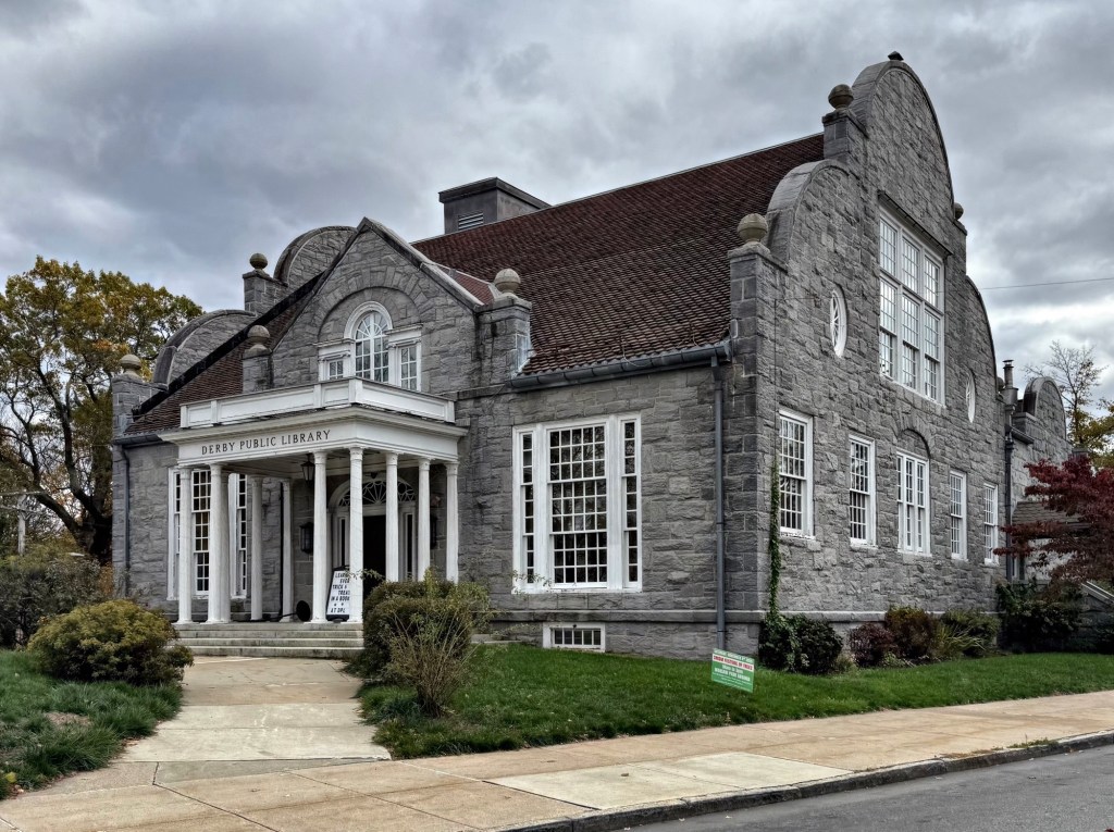 Derby’s main public library building, the Harcourt Wood Memorial Library, is located a few blocks from the city’s downtown on a unique triangular lot formed by Elizabeth and Caroline Streets. The one-story library is one of the finest of its period in all of New England and is built primarily out of Ansonia granite. The library was designed by architect Hartley Dennett and is notable for its Colonial Revival style porticoed entrance and distinctive rounded Flemish gables on the side walls. The interior is said to retain most of its original woodwork and many of its original furnishings. The building was constructed in 1902 following the donation of land and funds for its construction by Hamilton Holton Wood, a native of Montreal who made his fortune operating Derby’s streetcar railway system. The library is named in honor of Wood’s son Harcourt, who died at the age of 12 in 1897. The community does a great job at preserving the structure, which is one of the finest of its type in the region.