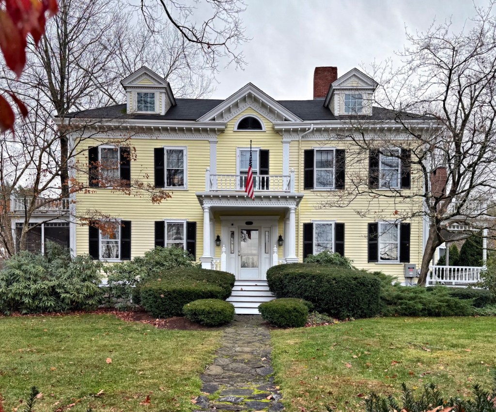 Built in 1805 by Isaac Gleason (Glezen), this Federal style mansion was later expanded in the early 20th century in the Colonial Revival style as Wayland became more of a wealthy Boston suburb. Located on the appropriately named Glezen Lane, this house was constructed for Isaac Glezen (1769-1843), who farmed the land here. Other family members built homes nearby. As Wayland shifted from rural community to a wealthy Boston suburb in the early 20th century, the property was purchased by Charles Ashley Hardy and his wife, Alice. The couple would sell the property in 1918, which comprised of 89-acres of land and a chauffeur’s residence, was purchased by Albert H. Beck, a New York banker. The property was later subdivided and consists of many other large, single-family homes.