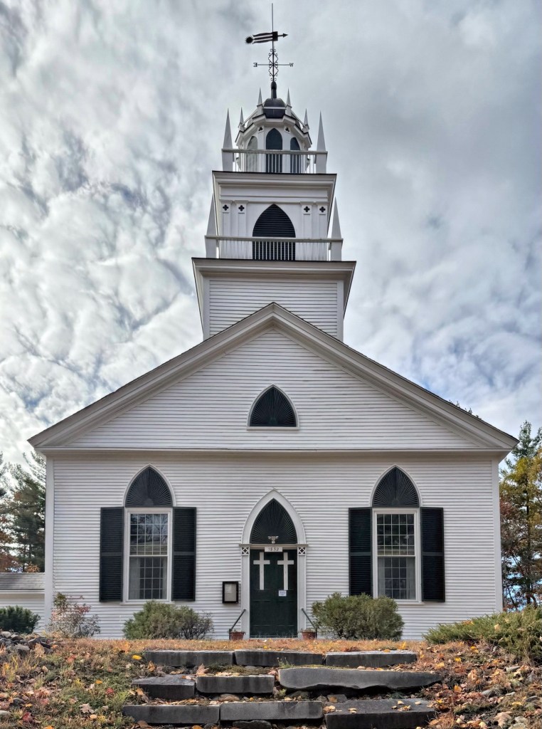 A once excellent example of a Gothicized, vernacular Greek Revival church in Vermont, the former Simonsville Meetinghouse in Andover, Vermont, has since been renovated into a private residence, removing almost all of the original fabric. Long ago in the Simonsville area of Andover, the residents desired to have a meeting house. There was a Baptist church in the village of Peaseville, but not all the Simonsville residents were Baptists, in fact, there were several religious denominations being followed. None of the religious groups had enough followers in Simonsville to be able to afford a minister and a church building, so they got together and combined their efforts and finances to erect a union meetinghouse that they would share. In April of 1847, the Simonsville Union Meetinghouse Society was formed and later that year, construction began, with the building completed in the spring of 1848. By the late 20th century, membership and use of the building dwindled, causing deferred maintenance and threatening the future of the church. The trustees of the church sold the building, and the church has since been renovated for private home. Sadly, the gothic belfry and historic window fenestration were altered in the renovation, but the entry and basic form remain.