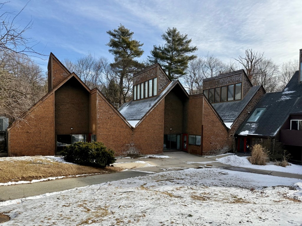 The modernist Brookline Town Hall building stands in stark contrast to the many historic buildings in Brookline Village, and even more-so from the town’s third Town Hall, a Victorian Gothic design by architect Samuel J. F. Thayer. Completed in 1965 as a six-story municipal “skyscraper”, the structure was designed by Anderson, Beckwith, and Haible, architects who specialized in sleek, clean, Modernist designs, primarily in office parks and college campuses. The unadorned box is broken up only by the rows of identical windows and slightly projecting fins, which break up the bays in their own monotony. Like many such municipal and office buildings of the time, the structure is set back from the street and surrounded by landscaping, with surface parking behind. While the building was lauded when it opened in 1965, tastes shifted and like in many communities, a majority of the public (and likely the employees who work here) would have preferred its predecessor.