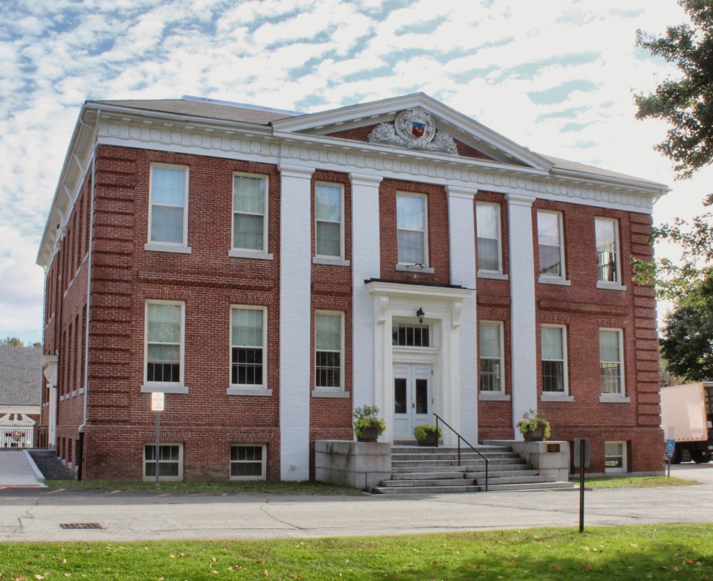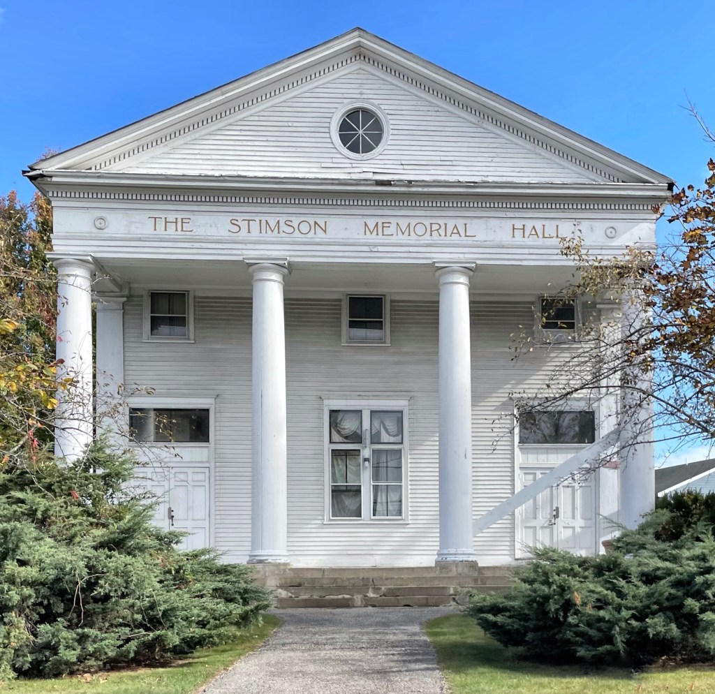 Stimson Memorial Hall is a historic, Neo-Classical building on Shaker Road in the center of Gray, Maine. Built in 1900, it served for many years as the town’s main public meeting space, and is a prominent landmark in the town center. The hall was built as a gift to the town, primarily through the efforts of Abbie Stimson Ingalls, who had moved to Cincinnati, Ohio with her husband, as a memorial to her late parents, Theophilus and Mary Stimson. The memorial hall was designed by Elzner and Anderson of Cincinnati, Ohio, and was built on land originally purchased by the local Universalist congregation. The upper level house the town library until the 1950s. The building was threatened in recent years, and as one of a handful of significant buildings remaining in the center of town, its preservation was important. It has some deferred maintenance but remains in good shape! Does anyone know what the building is/will be used for?