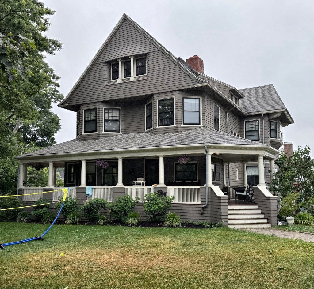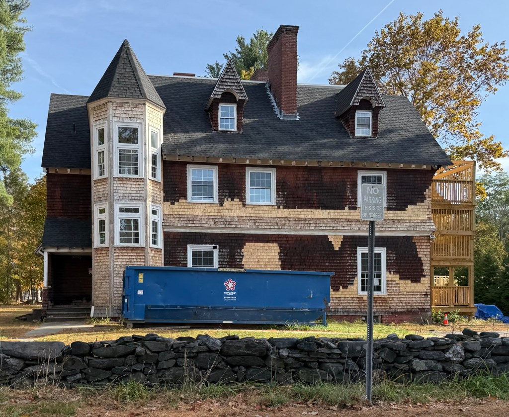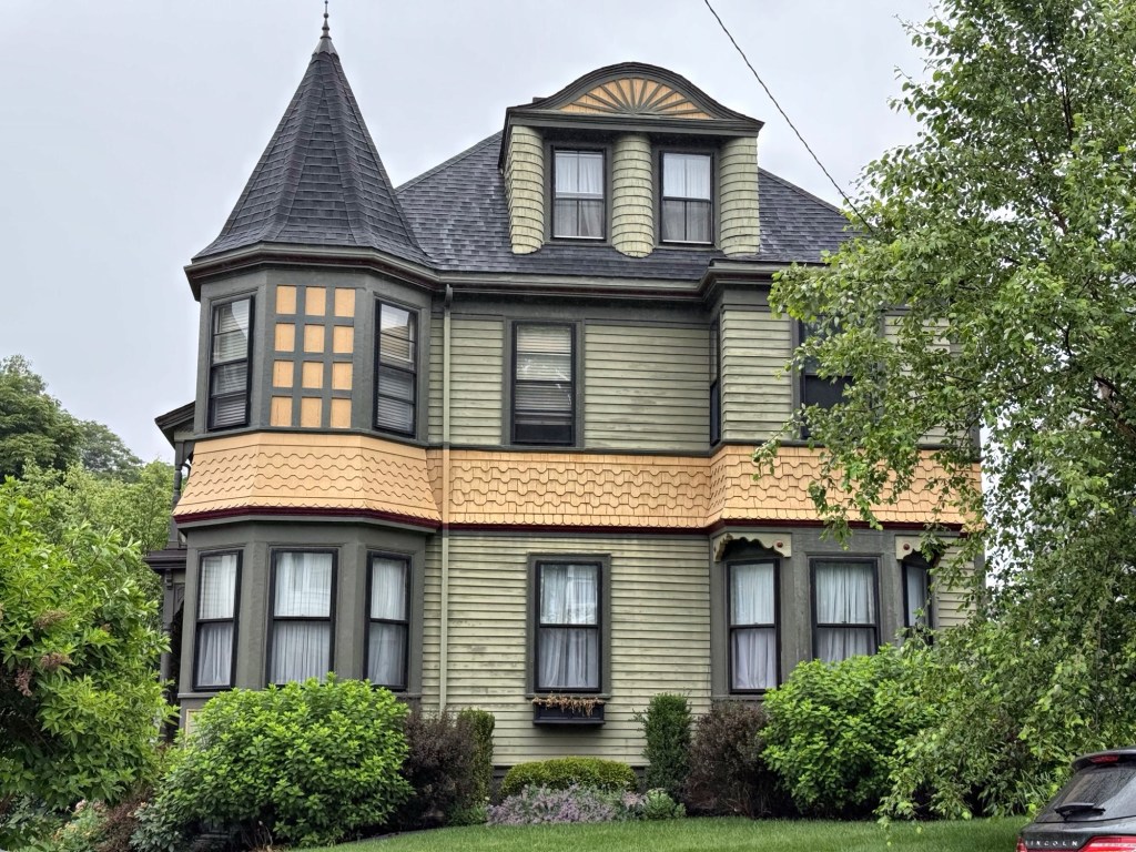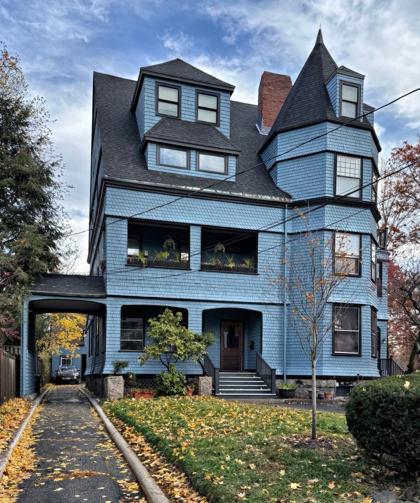 At the junction of West Main and Main Streets in Chester Village, Connecticut, this unique flatiron commercial building stands overlooking the Pattaconk Brook that cuts through the center of town. In 1913, this two-story block was built with ground floor retail and a second floor residence for owner, Elmer Pierce, who ran his pharmacy downstairs. By 1920, the building was owned by Jacob Feinstein, who raised his family on the second floor and had his clothing business, “Feinsteins” in the store below. Later, the retail space was occupied by Child Design, a wooden toy store, and after that, a lighting fixture store. Historic main street buildings are often incubators for small and local businesses, keep the chain stores near the highways!
