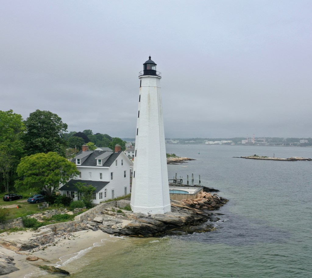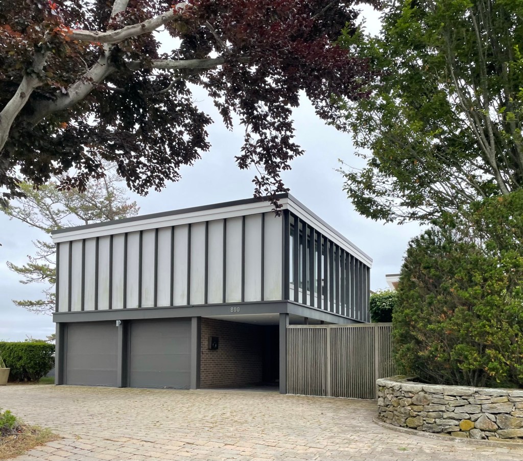Perched atop the rocky coast of New London, CT, and seemingly at the base of the iconic New London Harbor Light, the “Castle House” stands as one of the most significant examples of 1960s residential design in a state known for such homes. The Castle House was completed in 1964 from plans by German-born American architect Ulrich Franzen (1921-2012), who attended Harvard’s Graduate School of Design after his service in WWII. After graduating, Franzen worked under I.M. Pei, until he formed his own firm, Ulrich Franzen & Associates, in 1955. The home’s signature element is its dramatic free-floating glass living room pavilion with cantilevered paraboloid vaults and flanking service wings, with a jaw-dropping cypress butterfly ceiling. Additionally, the oval pool sits over the harbor water and provides the best possible views of the 1801 lighthouse towering above. The house was recently updated by SchappacherWhite, a design firm who are known for their thoughtful Mid-Century Modern house preservation projects.