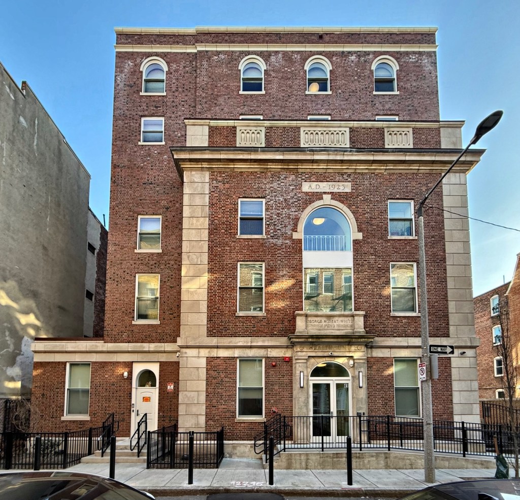 Originally known as the George Robert White Health Unit Number 2, this Colonial Revival style building is located on North Margin Street in the North End of Boston, and is significant as an early health center providing health and education services for some of Boston’s most underserved residents. The building was constructed in 1923 as one of the neighborhood-based health centers built in Boston in the 1920s and early 1930s from funding by the George Robert White charitable trust. George Robert White (1847-1922), a longtime resident of Boston, worked in the office of the Potter Drug and Chemical Company as a boy, eventually becoming president and an owner of the corporation. He was an investor in real estate and reportedly was known for many years as the largest individual taxpayer in Boston. Upon his death, his will specified that his bequest to the city, about $5 million in 1922 (approximately $93 Million valued today), would be held in a permanent charitable fund “to be used for creating public utility and beauty and for the use and enjoyment of the inhabitants of Boston.” The North End Health Unit was the second built (the first was in the West End), and designed in the Colonial Revival style from plans by Coolidge and Shattuck, later known as Coolidge, Shepley, Bulfinch & Abbott. Since the 1970s, the building was occupied by the Knights of Columbus, a fraternal organization, until 2020, when the building was renovated and converted into housing with 23 units for elderly residents.