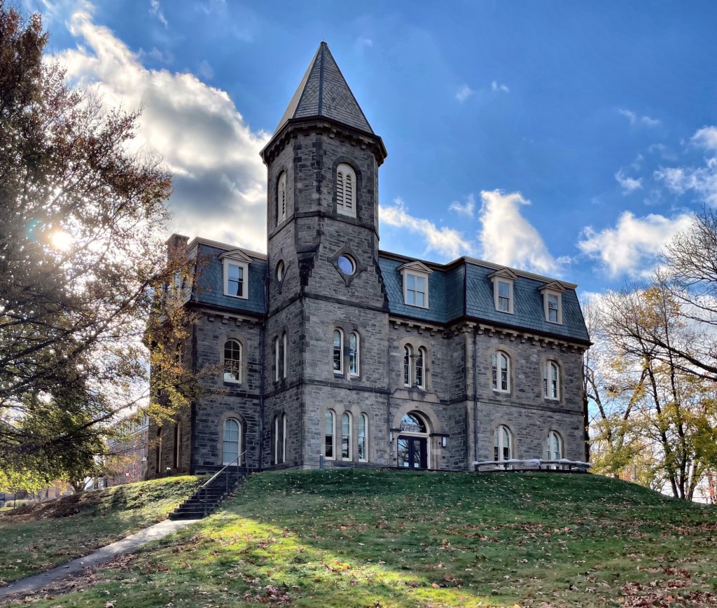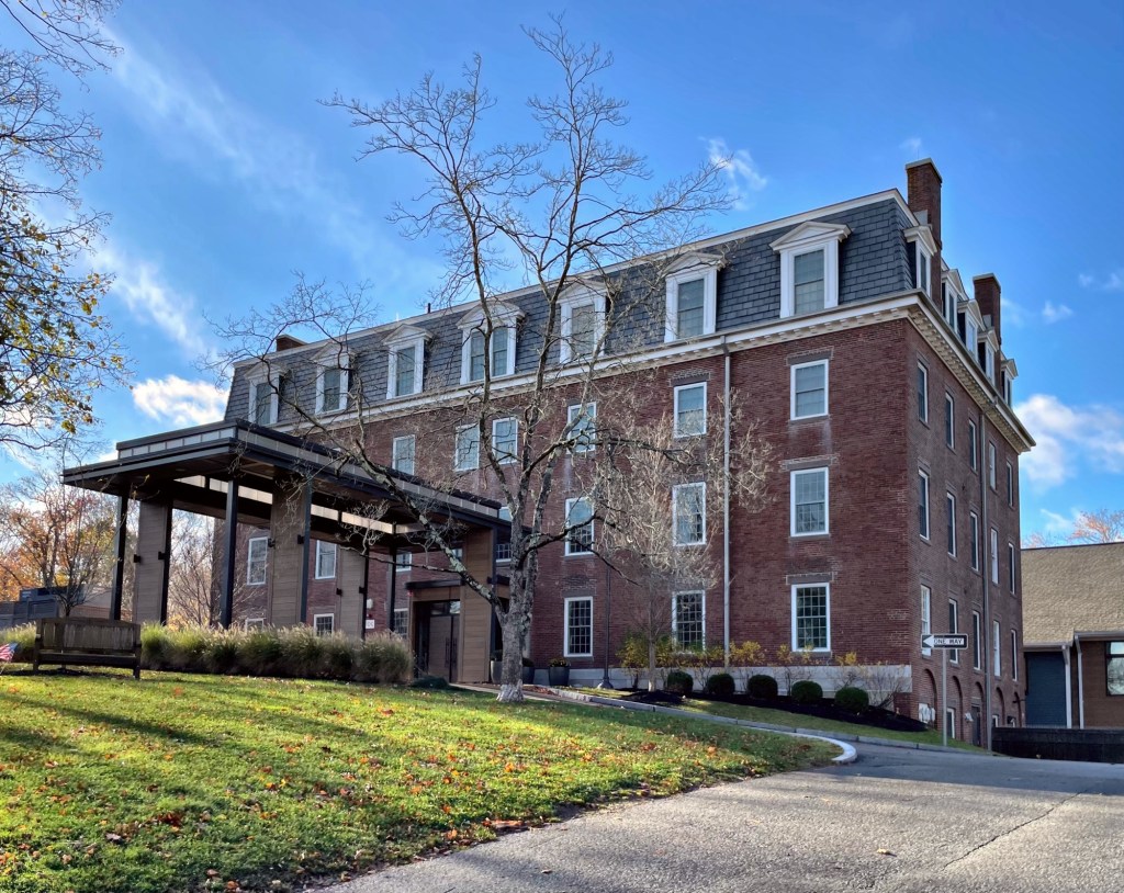 Colby Hall sits perched atop a hill overlooking Newton Centre, Newton, and is located in the Andover Newton Theological School campus. The building was constructed in 1886 for the Newton Theological Institution, which was founded on this site in 1825, and used for the a Baptist seminary, educating young students in theology. By the 1860s, the school had outgrown its space and following a donation from benefactor,  Gardner Colby (1810–1879), who was treasurer of the school (and was also the benefactor and namesake of Colby College in Maine) plans were drawn up for the new lecture spaces and chapel building. The unique building was designed by Alexander Rice Esty, a prominent architect at the time, and it blends Second Empire and Romanesque Revival styles under one roof. The three-story structure is of a light buff, rough cut stone with sandstone trim and features an imposing four-story tower at the eastern end. In November 2015, the school announced that it would sell its campus and become part of Yale Divinity School in New Haven, Connecticut. The Newton campus was purchased by the Windsor Park School with Colby Hall now occupied by the Boston Psychoanalytic Society & Institute.