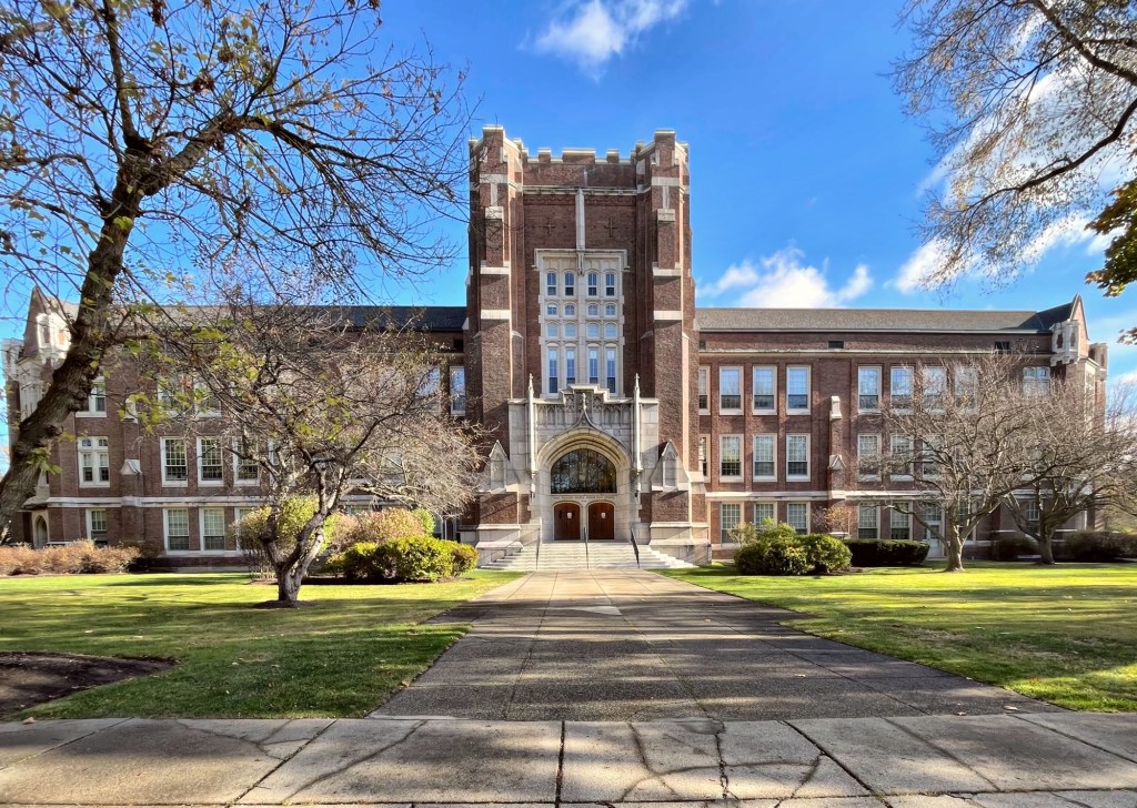 Originally constructed in 1931 as the Weeks Junior High School in Newton Centre, Newton, this architecturally significant school building is the finest local example of the Tudor Revival style in that use. The Weeks School was designed by Ralph Coolidge Henry and Henry Parsons Richmond, architects who were draftsmen for Guy Lowell, one of the greats, and the successors to his practice upon his death in 1927. The design for the Weeks School is of traditional brick and cast stone, with its main entrance through a large Gothic arch at the center of the building. Two wings extend parallel to the tower and then bend back at 45-degree angles, creating the distinctive U-shaped form, which provided ample natural light in all classrooms. After a consolidation of local schools in the mid-20th century, the Weeks School closed, but was beautifully rehabbed in 1984 into housing as the Weeks House. Today, the building is comprised of mixed income housing of about 75, one-, two- and three-bedroom units.