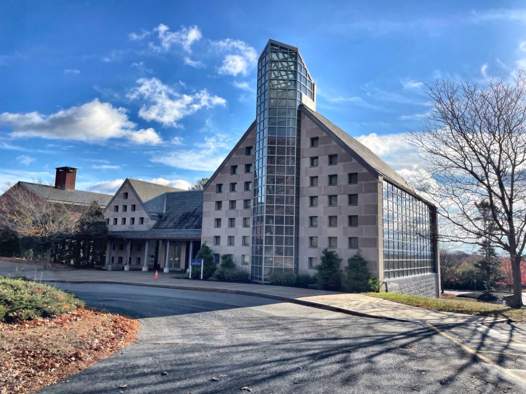 The last building constructed on the former Andover Newton Theological School in Newton, Massachusetts, was Wilson Chapel, located at the edge of the campus. The building is a modern interpretation of the traditional New England meetinghouse, and was completed in 2007 from plans by Context Architecture. The limestone building is punctuated by a grid of square punched windows and raised panels with the primary facade dominated by a glass tower, resembling the more traditional steeple. To me, the building does an excellent job at respecting the basic forms of a New England chapel, while utilizing contemporary materials and design elements to distinguish it as a 21st century structure.
