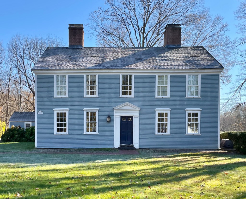 Just outside of the village center of Lancaster, Massachusetts, this Georgian style house stands out as one of the town’s finest Colonial residences. The residence was built for John Sprague (1740-1800), who settled in Lancaster and was one of only three lawyers in the county following the departure of his Tory colleagues during the Revolution. Sprague represented Lancaster in the General Court beginning in 1782 and occasionally sat in the Senate. He was first appointed judge in 1784 and in 1798 became chief justice of the Court of Common Pleas for Worcester County. He was active in Shays’ Rebellion, and later, along with John Hancock and Samuel Adams, was one of the antifederalists who converted and helped ratify the U.S. Constitution. Sprague moved to a new house in 1785, and sold this property to Daniel Waldo (1724-1808), a wealthy Boston merchant who started America’s longest-running hardware store, in Worcester (Elwood Adams). Waldo was a great-great-grandson of Anne Hutchinson, America’s first major female religious leader/dissenter. The house has had many other notable owners, all of whom have preserved this stunning five-bay colonial house for nearly 250 years.