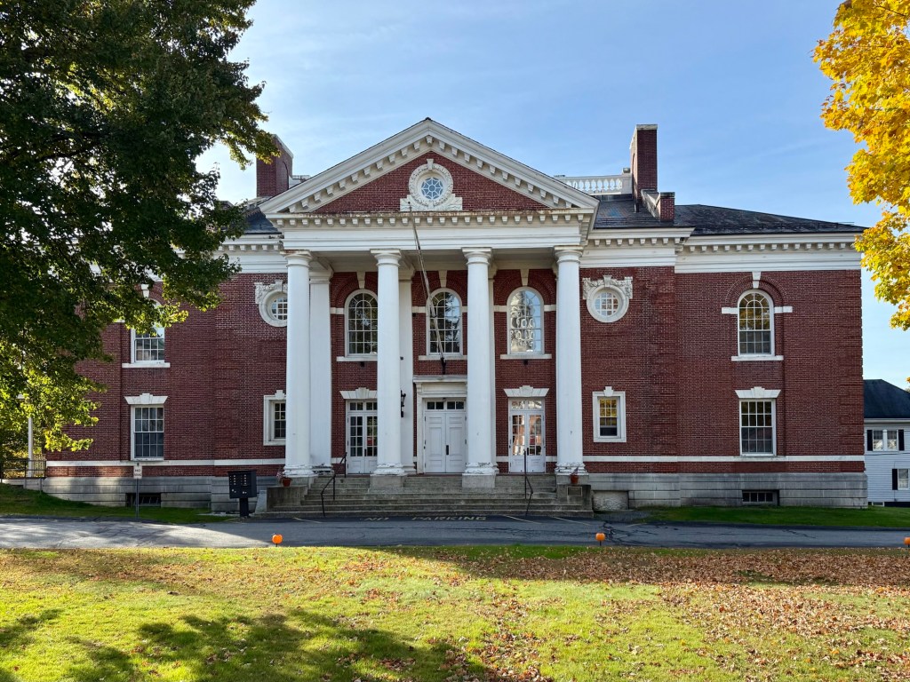 The Town Hall of Lancaster, Massachusetts, was built in 1908 and is one of four religious and civic buildings framing the village’s bucolic town green. The Town Hall was built opposite the Charles Bulfinch-designed First Church of Lancaster and replaced an earlier town hall building that was constructed in 1848. The building was largely funded as a gift from wealthy Lancaster-native, Nathaniel Thayer’s sons, following their late-father’s death. Boston architect, Alexander Wadsworth Longfellow, the nephew of poet Henry Wadsworth Longfellow, was hired to furnish plans for the building, which is Colonial Revival in style, a perfect compliment to the historic New England town.