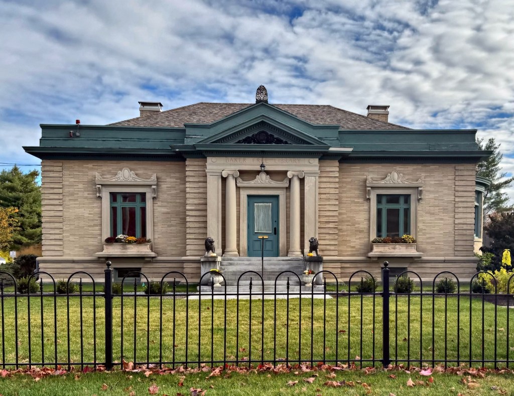 In 1912, Congressman Henry M. Baker, cousin of Mary Baker Eddy, the founder of the Church of Christ, Scientist, left in his will, $10,000 and the land next to his family home to the Town of Bow for the creation of a public library for his hometown. Architect, William McLean formerly of the firm, McLean and Wright, who specialized in library designs of the early 20th century, was selected to furnish plans for Bow’s new library, which employs a sort of Classical Revival/Beaux Arts design, similar to many Carnegie libraries of the time. As the town grew, the library has been expanded.