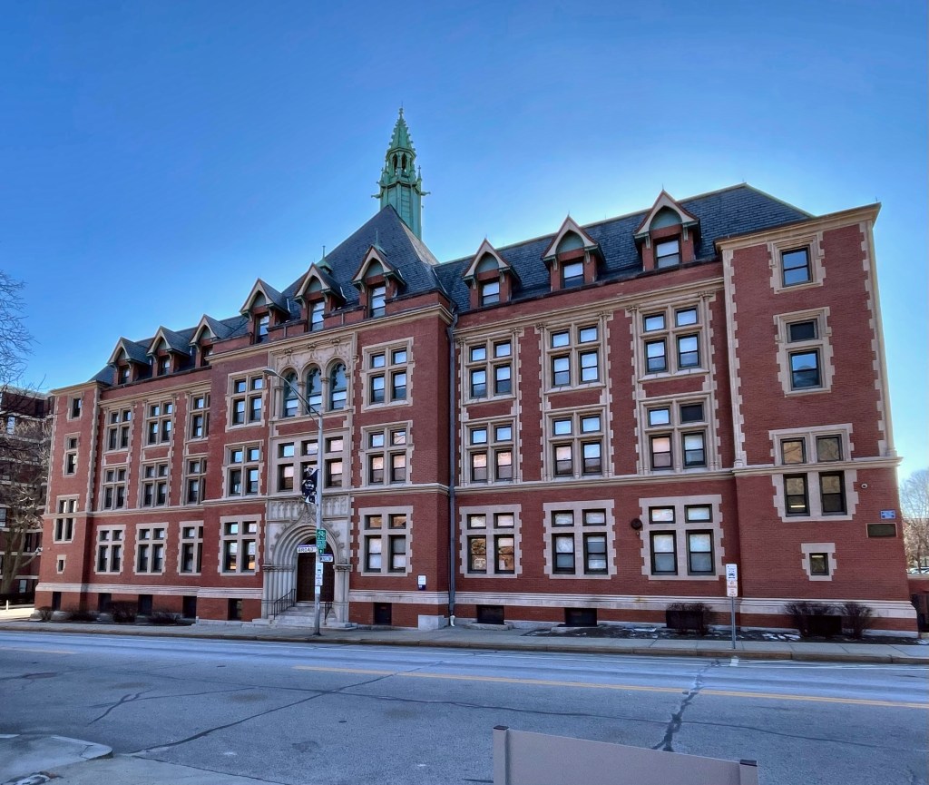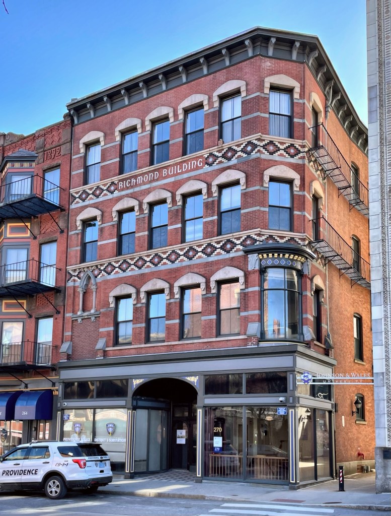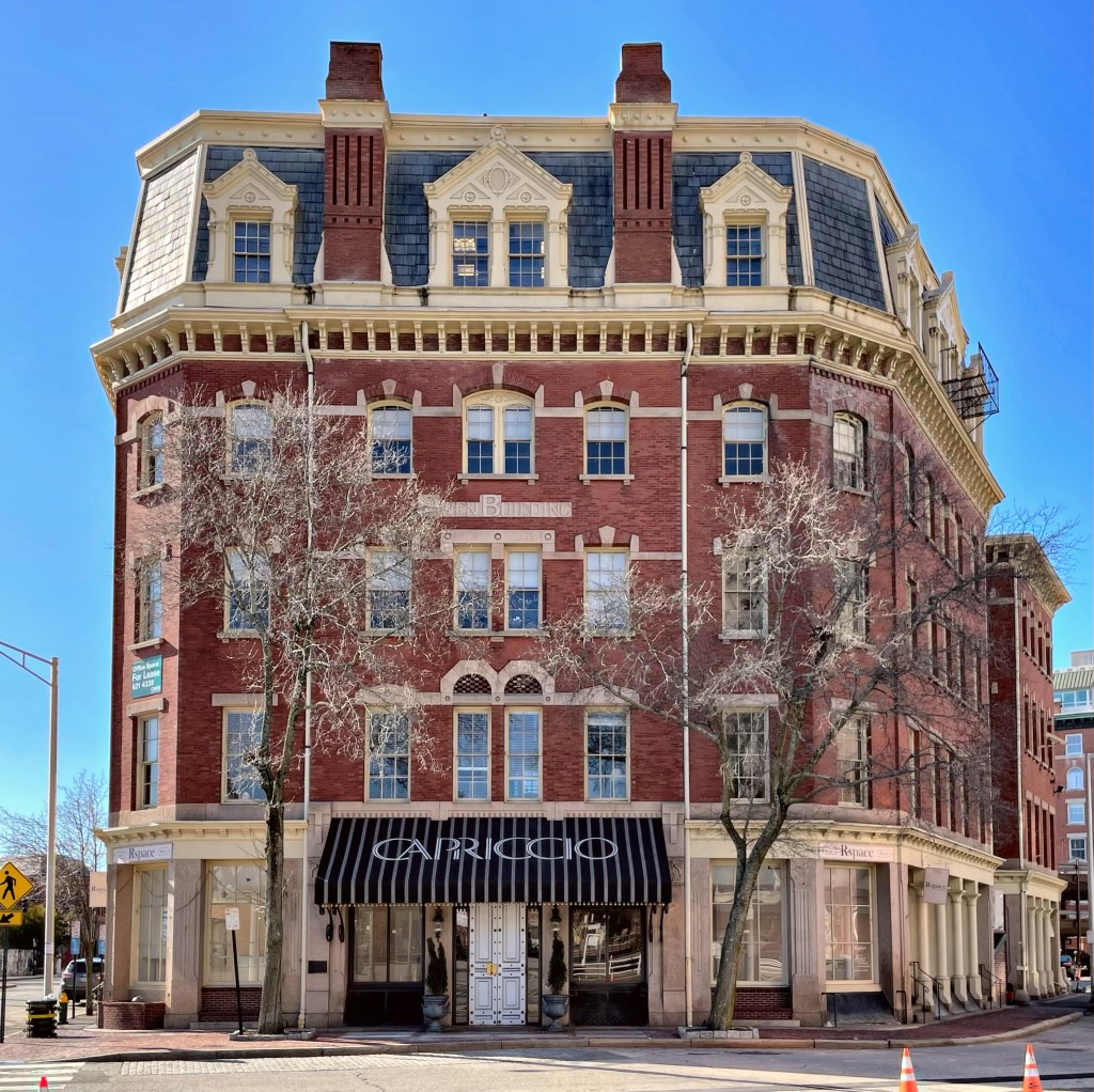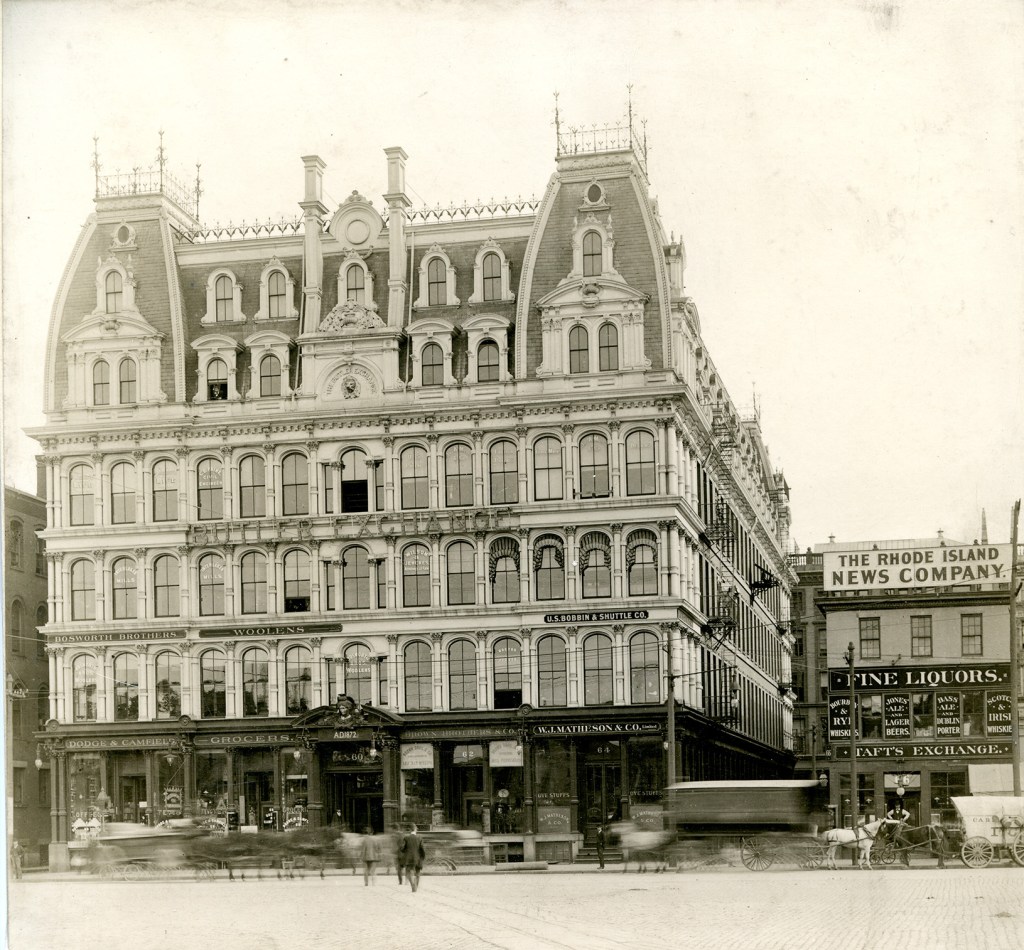 Located at the eastern edge of Downtown Providence, the Rhode Island Hospital Trust Building is significant as one of the city’s finest examples of the Beaux Arts style of architecture and as the headquarters of what was once the largest banking institution in the state of Rhode Island. The Rhode Island Hospital Trust incorporated in 1867 as the first trust company in New England. It owes its unique name to the fact that it was chartered by the board of trustees of Rhode Island Hospital, founded four years earlier, with the trust company established to help finance operations of the hospital. The original, purpose-built bank was constructed in 1891, and quickly outgrown as the institution grew exponentially into the early 20th century. In 1916, the trust hired the New York architectural firm of York & Sawyer to furnish plans for the present structure. Construction began in 1917, and after delays caused by WWI, the building finally opened in 1919. The 11-story U-shaped building was designed in an exaggerated form of Renaissance palazzo, with steel-framed construction that is faced with marble on the two lower levels and limestone elsewhere. After a series of mergers throughout the 20th century, the building was owned by FleetBoston, who donated this pristine building to the Rhode Island School of Design (RISD), which was renovated into a dormitory by RISD-alumni and architect Nader Tehrani of NADAAA Architects. It is today known as the Mandle Building.