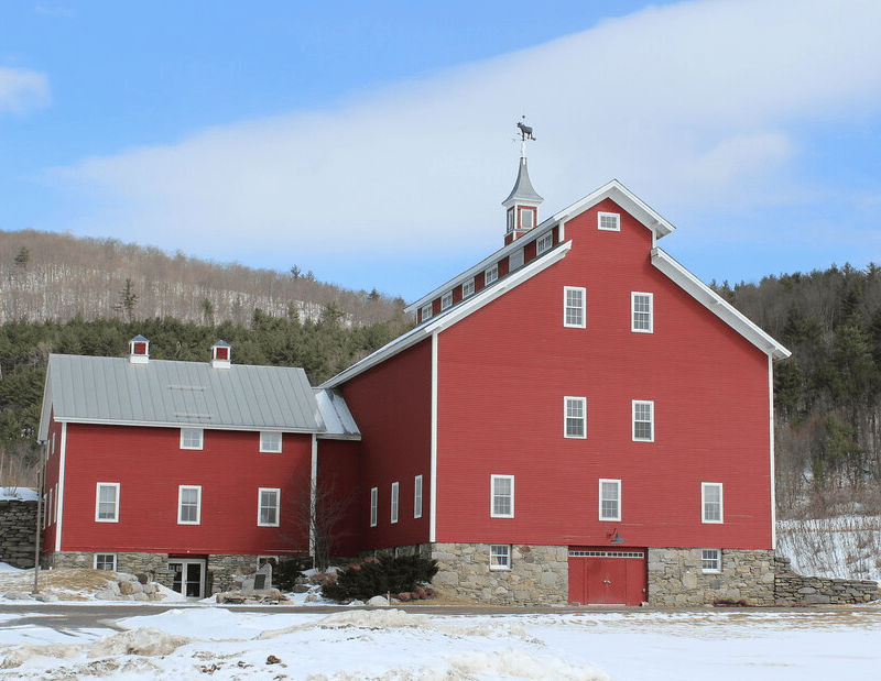 There is something about red barns that just scream Vermont! Located in Richmond, the West Monitor Barn is one of the best-preserved large barns in the region. The West Monitor Barn was constructed in 1903 by Uziel Whitcomb. At the turn of the century when agriculture represented 70% of the American economy, the Whitcomb’s operation was one of the most successful; at a time when the average farm had eight cows, the Whitcomb’s had hundreds. Hay and grain were planted and harvested by hand and horse. More than 175 cows were milked three times a day by hand inside of this barn. Milk went from cow to pail, to can, and then was driven to market by horse and wagon. It was an operation that represented the epitome of hand-powered farming, and was an operation admired nationwide. The farm was so large and eventually shut down decades later, leaving the iconic barn to decay. A new owner purchased the structure and began a massive restoration project which took years. About 40% of the timbers in the reconstructed barn are original and the rest have been carefully and accurately re-fabricated. In addition, the stone foundation and walls are all original stone – quarried by hand from the back fields. The East Monitor Barn also on the property is in fair condition and could use the same updates. The barn is now commonly used as a venue for weddings and other special events!