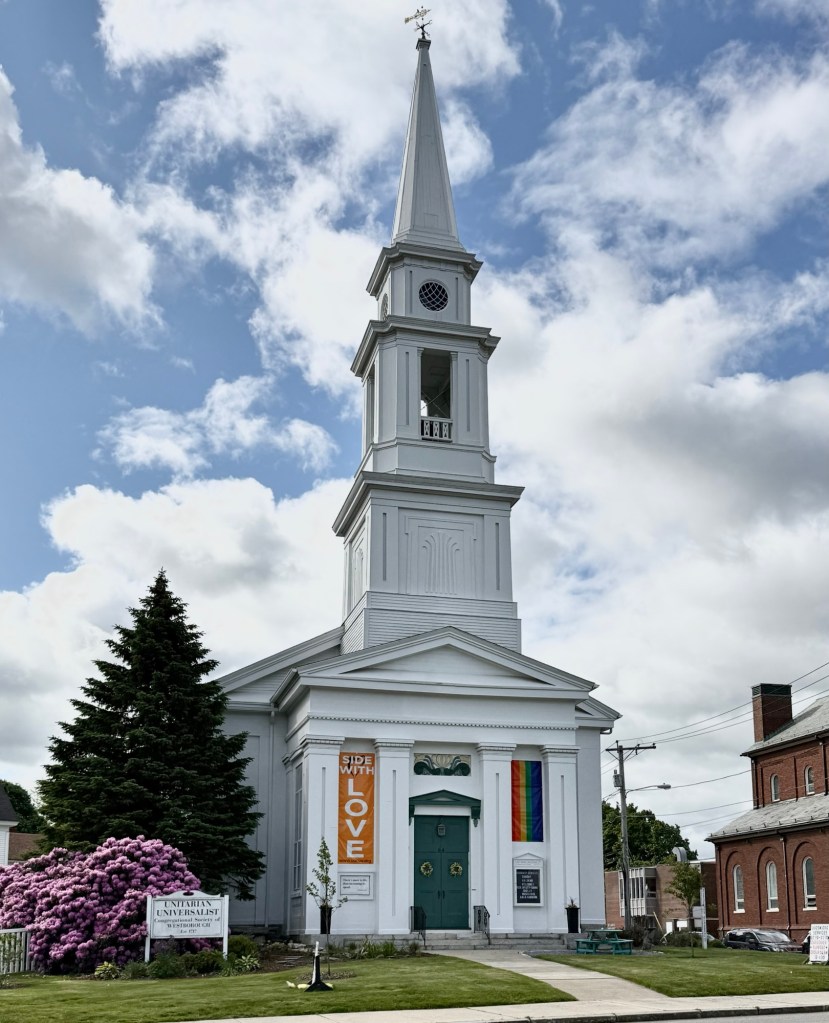 The Unitarian Universalist Church of Westborough, Massachusetts is architecturally significant as an excellent example of a ecclesiastical building in the Greek Revival style, but it is also significant historically as it tells a richer history of the community and New England as a whole. The Congregational Church has its roots in the first church in Westborough, established in 1724 under Reverend Ebenezer Parkman. The Religious Freedom Act of 1811 and the official separation of church and state in 1825 encouraged a diversity of religious views in Westborough and a branching out from the first church both spiritually and since churches needed new houses of worship. As a result, the local church in Westborough split due to differing beliefs, with the Congregationalists building a church and a few years later, the Unitarians building this church, both in variations of the same architectural style. The UU Church in Westborough was built by 1850 and was expanded as the congregation grew. The building remains nearly identical to when it was built except for the steeple, which in 1921, was in such bad repair that it had to be removed. Less than a decade later in 1930, member Isadore Forbes donated the funds to have the steeple rebuilt and a bell installed.