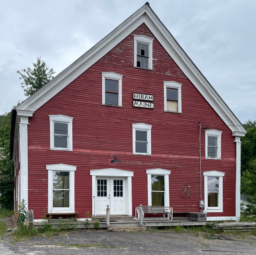Hiram is a small, rural town in Oxford County, Maine, and has a handful of notable old buildings. The town was incorporated in 1814 and was occupied by white settlers as early as 1774. The land here has long been heavily wooded and the town’s name was inspired by the biblical King Hiram of Tyre whose kingdom was set among “timber of cedar and timber of fir.” The town’s two villages, Hiram Village and South Hiram, grew along the Saco River, and are typical rural villages built around industry and modest frame dwellings. This commercial building is one of the larger structures in Hiram Village and it dates to the mid 19th century. The structure was owned by Thomas B. Seavey, who purchased a store built on the site as early as 1816, from a Simeon Chadbourne. The store was enlarged and became a major hub of the sleepy town in the 19th and 20th centuries, but like many such structures, struggled due to changing of shopping habits and rural decline. The building, with its vernacular and Greek Revival lintels, appears vacant today.
