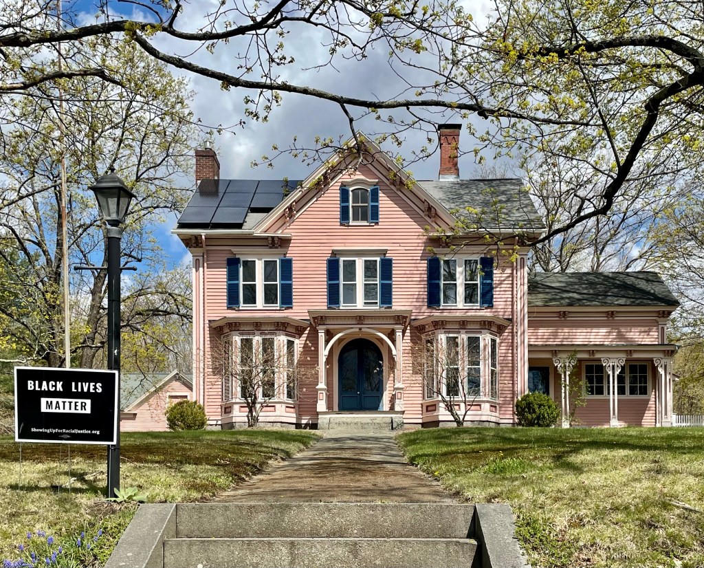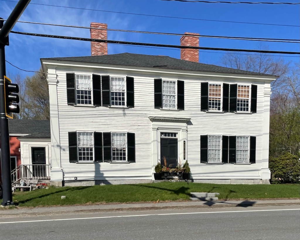 Not far off Main Street in Acton Center, this stunning old Georgian home was built around 1740 for Jacob Hooker a tailor and later served as the home of James Dudley, a blacksmith in the village. After the American Revolution, Acton called on Reverend Moses Adams (1749-1819) to be the minister for the Acton Meetinghouse. The town acquired the old Dudley House for Reverend Adams to reside in with his family. In 1780, the home was enlarged, and possibly given the raised foundation we see today. Mrs. Adams ran a store out of the basement, accessed by the doorway in the brick foundation. After Adams’ death in 1819, the property went to the next reverend in town, until his death decades later. In 1889, a carpenter, Moses Taylor, purchased the home, restored much of the woodwork, and replaced the historic windows with 2-over-1 windows, popular at the time. Moses moved a house on Main Street to make way for the new Acton Memorial Library, and was active in building and renovating homes in Acton until his death.