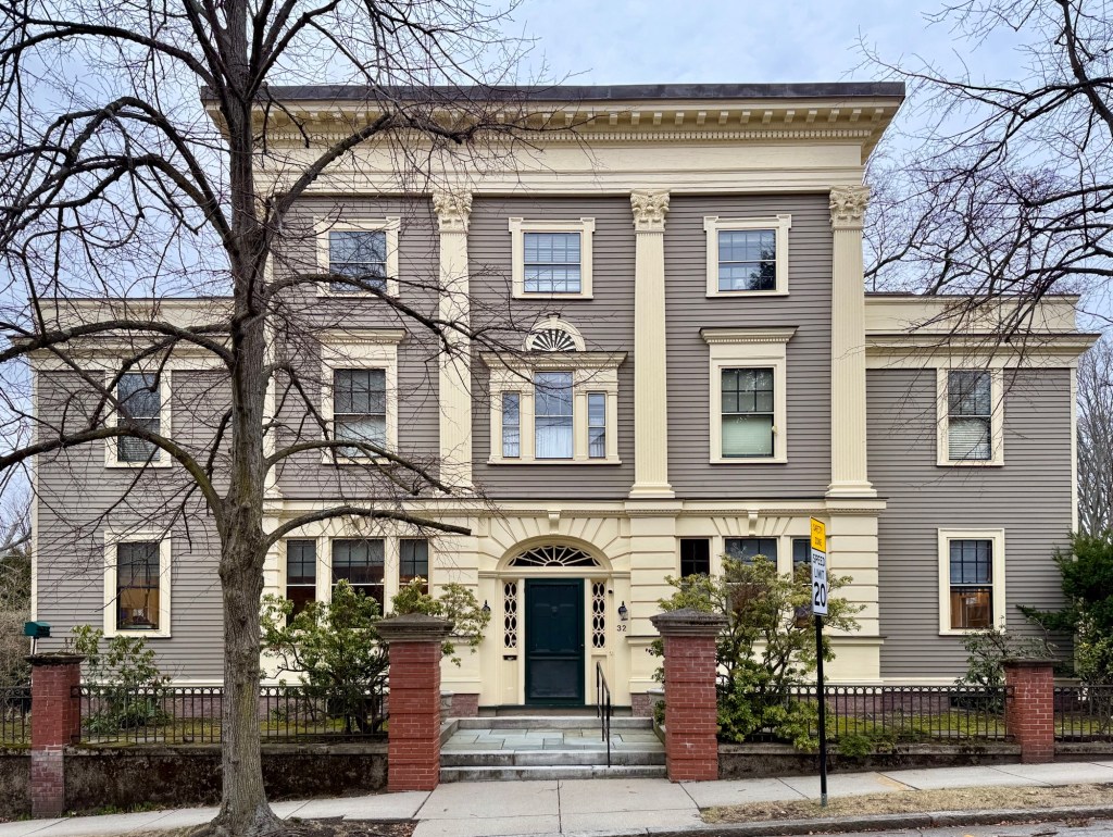 Located at the corner of Borland and Chatham streets in Brookline’s historic Longwood neighborhood, the McInnes-Morse House stands as one of the area’s finest and stately Colonial Revival style homes. The three-story residence contains a three-bay main block with two-story side wings and central entrance. A rusticated first floor is surmounted by clapboarded walls above with two-story fluted pilasters dividing the bays and a central Palladian window. The facade is further embellished with dentilled cornice and egg-and-dart mouldings. The residence was completed in 1901 for Edwin G. McInnes, a lawyer, and his wife, Mabel, who split their time between this home and a residence in Manchester-by-the-Sea. The second owners were Theresa J. Morse and her husband, Alan. Theresa worked full-time at the regional office of the War Labor Board in wage control, processing cases involving the metal trades and wartime industries. After the war, she became active in the League of Women Voters and was appointed to the Brookline Housing Authority, where she advocated for smaller-scale public housing integrated with social services. The residence remains well-preserved and commands this prominent corner across from the Longwood Mall. I could not locate the architect for the home, but would love to find out!