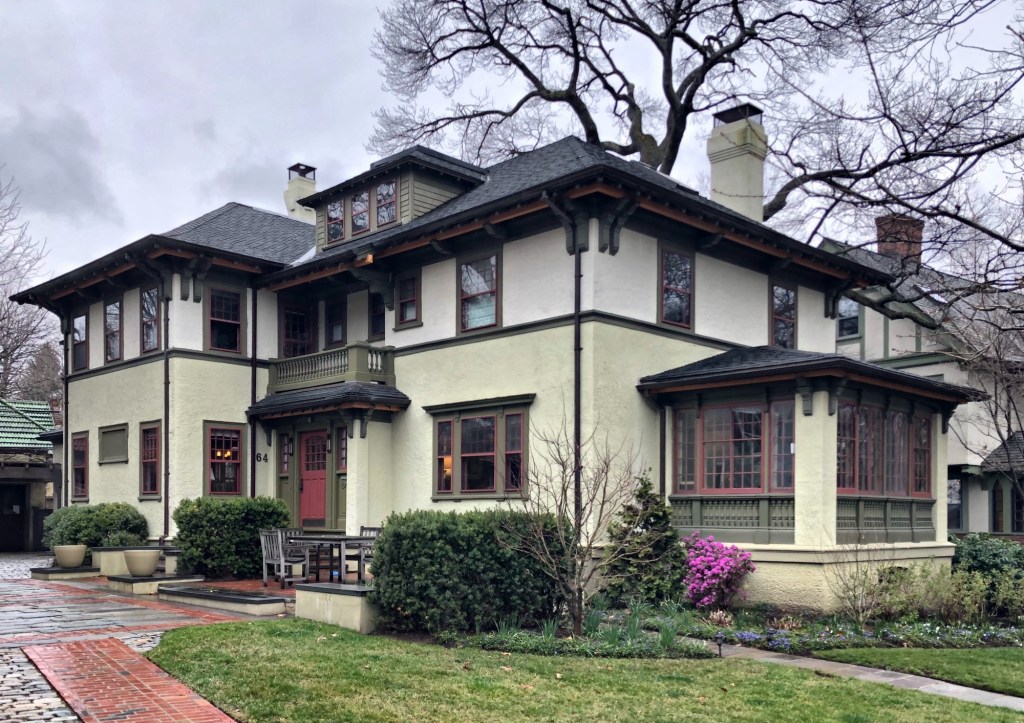 Built in 1906, the Library at the Onteora Park summer colony in Hunter, New York, is one of the many architectural treasures in the development. Designed by George A. Reid, the Canadian artist, architect, and summer resident of Onteora Park, the Tudor-style Arts and Crafts building was constructed in 1906 and opened to a collection of over 1,500 books and a full-time librarian during the summer season. Built of wood-frame construction with stucco exterior finish and adorned by half-timbering, the building has been lovingly maintained and preserved by members of the community for over 120 years.