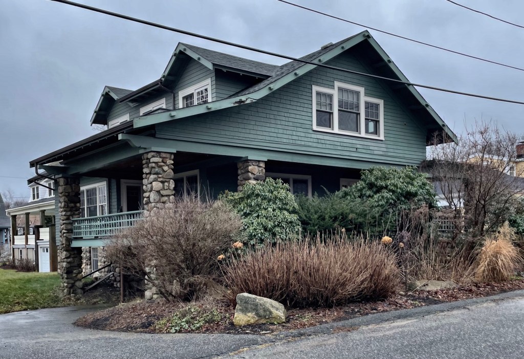 Another great turn-of-the-century summer cottage in Rockport’s Headlands neighborhood is this c.1910 Craftsman house on Norwood Street. The listed early owner was L. S. Haskins who likely utilized the house as a summer residence. Architecturally, the cottage follows the Craftsman form with a low-sloped roof with broad eaves, shed dormer, exposed rafters, and rubblestone foundation and columns of stones taken from the site and nearby neighborhood.