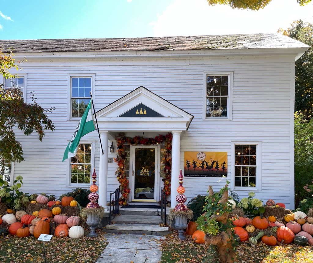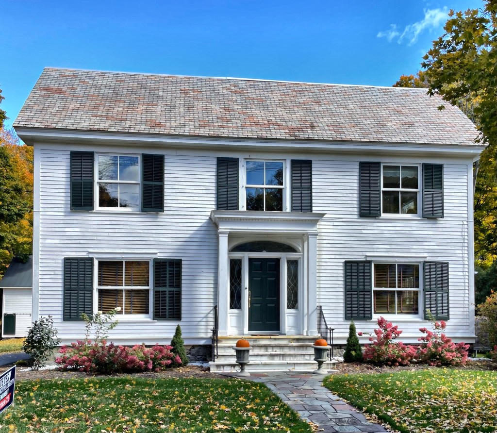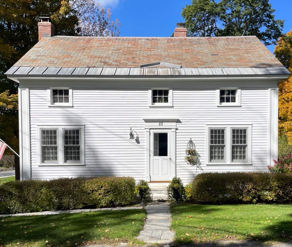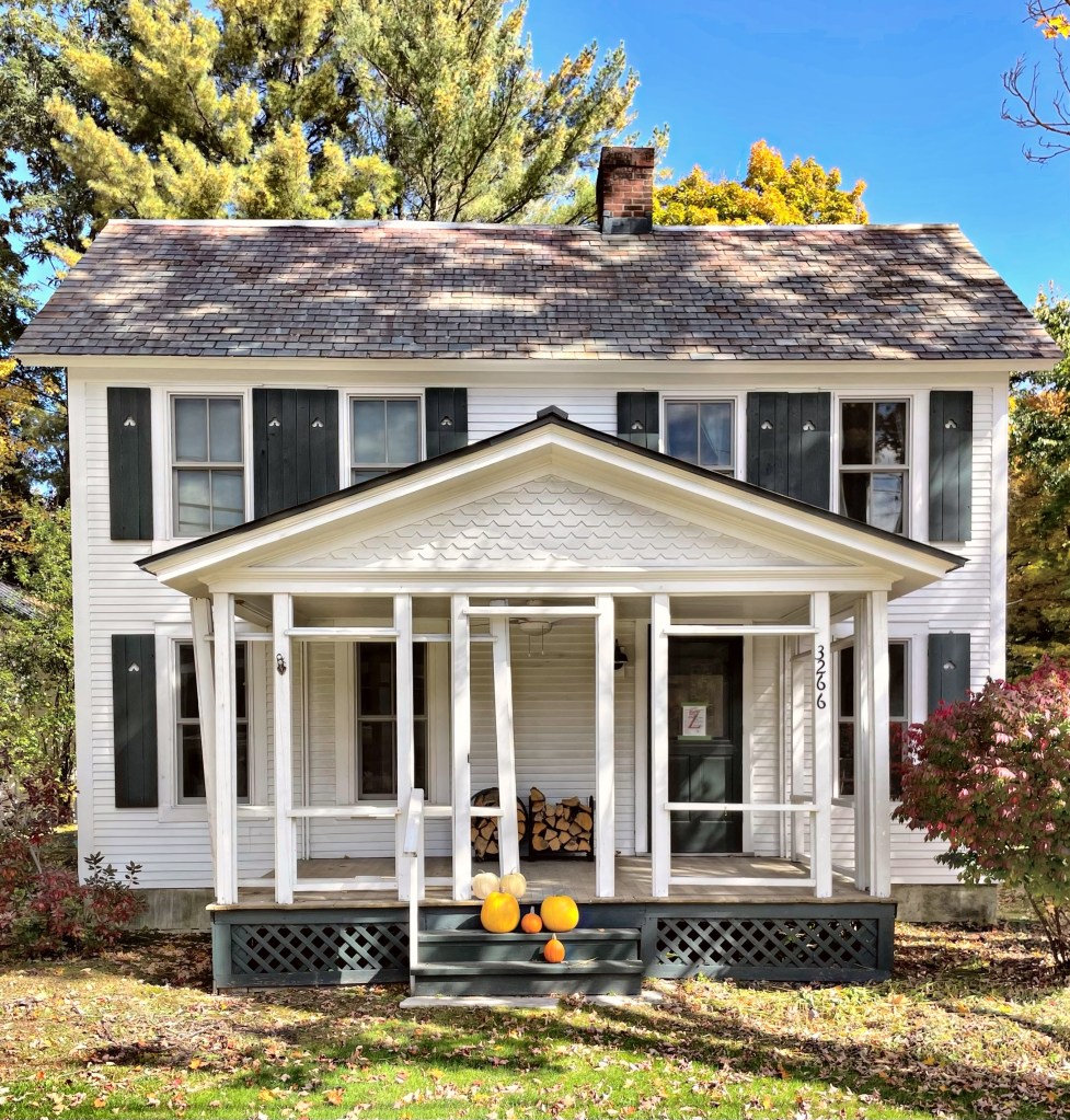 This charming cottage in Dorset is one of four houses in the village which were moved here by Charles Wade in the 1920s and ‘30s. Wade was born in Dorset and saw declining population with the marble industry failing. He sought to re-invigorate the town by advertising its natural beauty and brought in homes and buildings from nearby to fill the “missing teeth” (including the building that presently houses the Dorset Historical Society). Assembled from parts of various Enfield, Massachusetts buildings moved to Dorset this 1½-story, wood-framed, clapboard house stands on a marble ashlar foundation and is said to have been built by Wade for his daughter, Laura Wade.