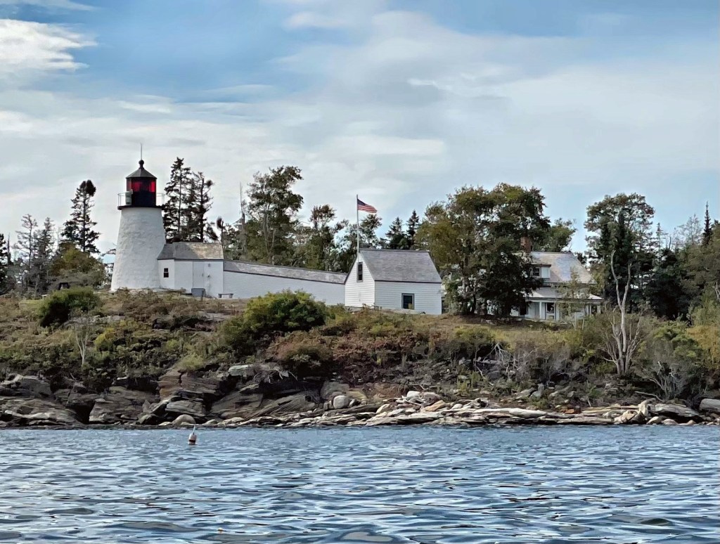 The Burnt Island Light Station was built in 1821 on the west side of the entrance to Boothbay Harbor, opposite the Spruce Point Inn (which I kayaked from to get a better view of this lighthouse). The federal government purchased the island for $150 from local businessmen Jacob Auld and Joseph McCobb. The government’s builders constructed a stone lighthouse and keeper’s dwelling using granite blocks cut from the island. The lighthouse was built on Burnt Island, which took its name from the historic practice of burning the island’s vegetation in order to keep the land clear for sheep grazing. Its purpose was the guidance of ships, the carriers of cargo destined for the development of industry and commerce, into Boothbay Harbor over a mile away. Built just one year before Maine became a state, the Burnt Island Light Station has served mariners for over 200 years. In fact, it’s considered the state’s oldest unaltered lighthouse, and it was manned until 1988 when the light was automated. In 1998, the island and light station were transferred to the State of Maine Department of Marine Resources as part of the Maine Lighthouse Program.