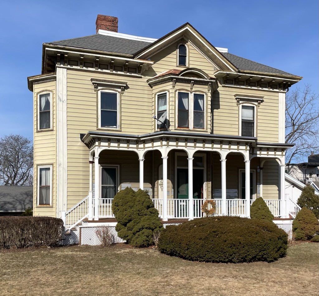 Built in 1882 as a Catholic mission church, the St. Mark’s Orthodox Church on Main Street in Kingston, Massachusetts, stands as a lovely example of a Victorian Gothic ecclesiastical building in a great state of preservation. In the waning decades of the 19th century, the Irish and Catholic population of Kingston grew, which led members to petition the Diocese to erect a mission church closer to their homes, rather than attend St. Peter’s in Plymouth. Originally called St. Joseph’s Church, the building served the local Catholic population until after the new, brick St. Joseph’s. Church was built further down Main Street in the 1930s. The local St. Mark Of Ephesus Orthodox Church congregation purchased the chapel in 1995 and restored the building, removing faux-brick shingling and reshingled the exterior.