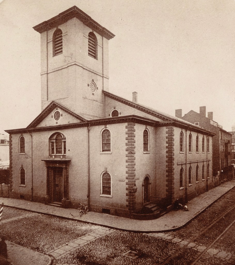 Located at the corner of Washington Street and Welles Avenue, the Dorchester Temple Baptist Church was designed in 1889 by architect Arthur H. Vinal, as one of the best examples of a church designed in the Shingle Style in New England. The church began in 1886 as a mission church of the Tremont Temple Baptist Church in Boston. At this time, Dorchester was a semi-rural area and would surge in development when the streetcars were electrified in the 1880s. With a rapidly developing neighborhood, the congregation here, purchased lots and hired Vinal to furnish plans for a house of worship. The church’s cornerstone was laid October 3, 1889, with the church membership numbering ninety-nine at that time. Membership would decline in the decades following WWII, and shifting racial and ethnic demographics in the neighborhood brought new members to worship here. The building was renamed as the Global Ministries Christian Church by the current congregation, who with the assistance of preservation grants, worked with Mills Whitaker architects to restore the iconic landmark. Specific details of the building stand out, including the stained glass windows, the belfry with bulbous form, and the arched openings with continuous shingled walls.