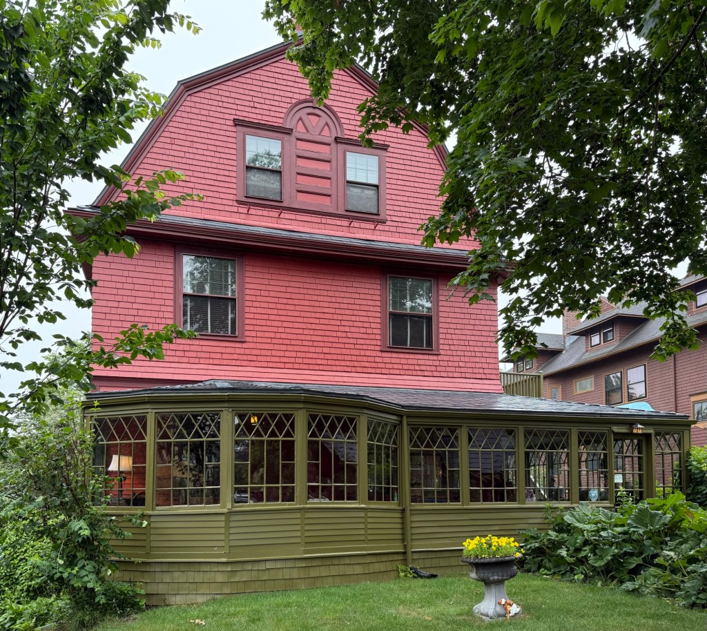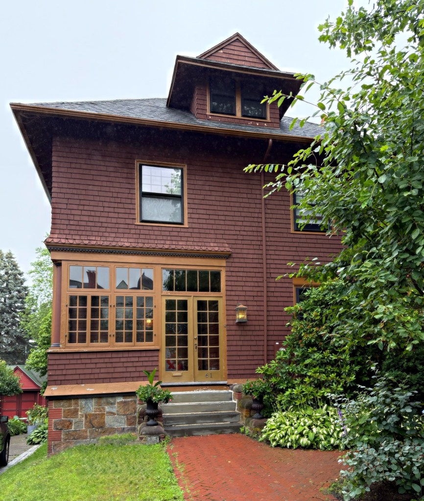 Built between 1889-1891, the house and stable at 60 Ocean Street in the Ashmont Hill neighborhood of Dorchester was commissioned by George A. Eastman, a Harvard graduate and insurance executive. George Augustine Eastman married Anna C. Winsor in 1870, and the family would remain in this house for nearly 100 years. George Eastman worked as an insurance executive at the Boston office of the Liverpool & London & Globe Insurance Company of England for over 50 years, and built his home next-door to his brother’s at 42 Ocean Street. It is believed that the Eastman House and Stable were designed by local architect Edwin J. Lewis, who designed about a dozen other residences in the surrounding area at the same time. The old stable has been converted to residential use, a great way to adaptively reuse these old, well-built structures.