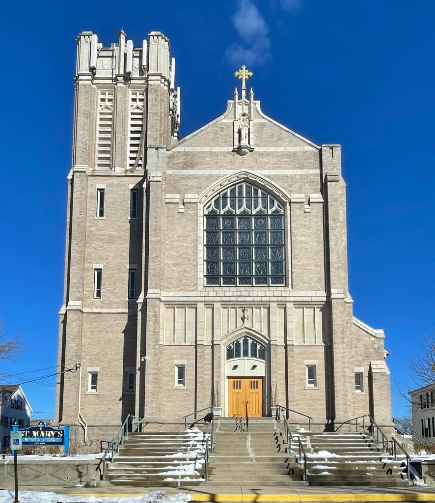 This 2-story Neo-Gothic Revival church constructed of buff brick and limestone, is dominated by an off-center, 4-level tower and showcases how even smaller towns in New England have some of the finest 20th century churches. In 1849 St. Mary’s parish, in nearby Warren, Rhode Island, was founded to serve residents there as well as Irish and French Canadian immigrants in Bristol, which began arriving en masse. Just years later, in 1855, the first St. Mary’s Church in Bristol, was constructed as a plain wooden structure, and operated as a mission of the Warren church. In 1874 the Bristol church became an independent parish and saw large increases to membership with more Irish families settling here. Over the next decades, the space became more cramped and a building campaign was started to get a new place of worship. The present St. Mary’s Catholic Church was built in 1911, from plans by the Providence-based architectural firm of Murphy, Hindle & Wright, who together (and separately) designed many ecclesiastical buildings, in Rhode Island and Massachusetts. The interior is even more stunning than the exterior detailing, and remains very well-preserved.