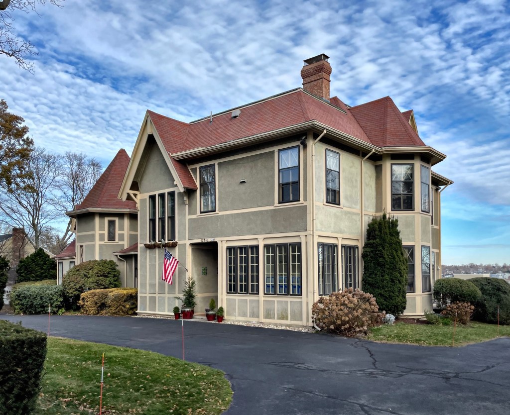 that would be as fireproof as possible. Designed by architect, Samuel Mead of the firm, Cabot, Everett & Mead, the handsome building is said to have been inspired by Mead’s travels to Italy where he gained an interest in Roman architecture and Renaissance art. The influence is seen on the exterior with the Romanesque Revival style and on the interior with an ornate frieze around the rotunda. The building was expanded in 1988 by Tappe Associates and remains one of the great early 20th century libraries in New England.