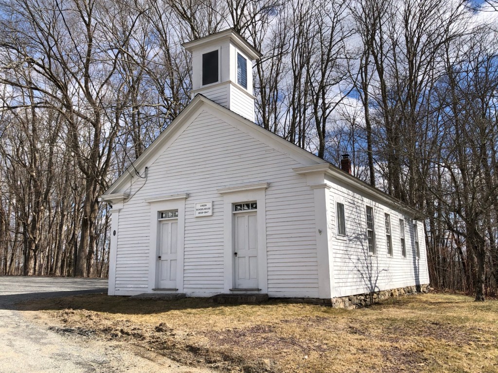 The Center District Schoolhouse of Canterbury, Connecticut, sits behind the village church and is the town’s best-preserved example of a district schoolhouse. Built c.1860, the vernacular, Greek Revival one-room schoolhouse served the central village through the 19th and into the 20th centuries with its twin entry, double-hung windows to allow light and air into the classroom, and a belfry with bell to notify pupils when class was about to start. Like many similar one-room schools in rural New England, pupils attended class with neighbors and siblings in the small, intimate classroom of varied ages.
