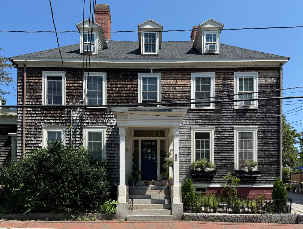 In around 1835, this stately Greek Revival style residence was built on Kirtland Street in the town of Deep River, Connecticut. With a symmetrical five-bay facade dominated by a classic Greek doorway with Doric pilasters supporting a broad entablature with smaller window above, the house is evocative of many residences built in New England in the 1830s and 40s by well-to-do merchants and industrialists. This house was seemingly built for Captain John Nelson Saunders (1815-1899) a year or so prior to his marriage to Ann Peters (1815-1904) in 1836. Captain Saunders was listed in the census as a ship master and sailor who likely utilized his property’s access to the Connecticut River just a short walk away. The Saunders House and its lovely stone retaining wall are preserved and tell the story of the town of Deep River’s maritime industry.