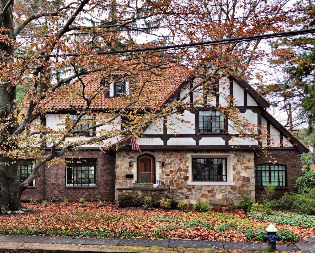 Residential architecture of the early decades of the 20th century is among my favorites as the Tudor Revival movement took off and was sometimes mixed with other revival styles at the time, creating really unique homes. The Glacy House in South Brookline, MA was built in 1930 as one of the earlier homes in the Walnut Hill development. It was likely designed and built by Walter L. Fernandez, a contractor who appears to have design-built a handful of spec homes to help get the neighborhood’s development going in the early stages. This home was originally occupied by George and Mary Glacy. George later worked as Vice President of the Boston & Maine Railroad, though he later got into legal trouble for hiring companies for railroad projects where he had financial interests, becoming indicted in an antitrust case by a Federal grand jury. The home features a first floor constructed of stone and brick with half-timbering on the floor above. The building is topped by a terracotta red tile roof, which is fairly uncommon for the region.