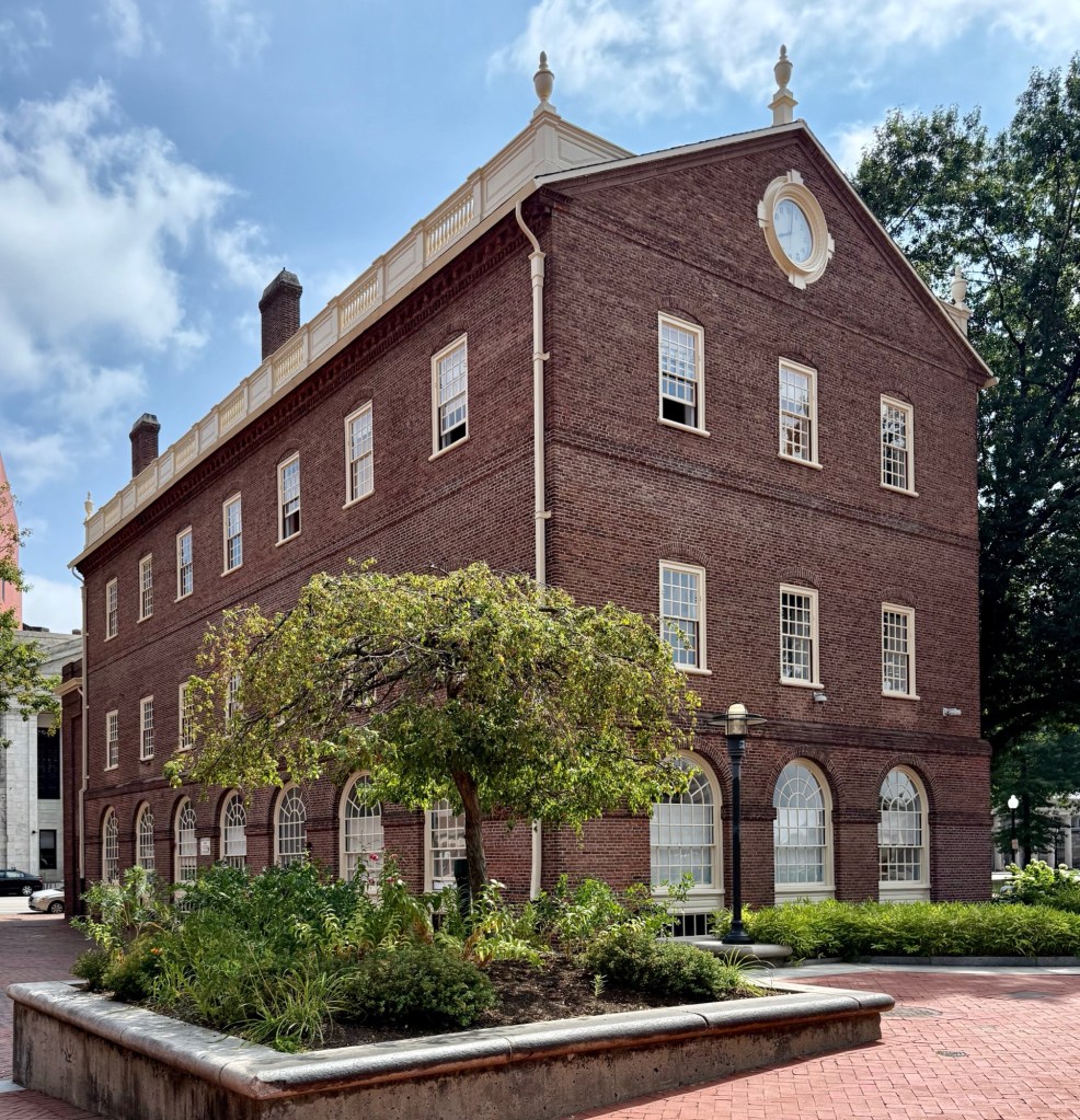 Located in Market Square between Downtown and College Hill in Providence, Rhode Island, the old Colonial Market House stands as one of the city’s oldest and most architecturally significant buildings. Constructed between 1773-1775, this Georgian-style structure originally served as a public market and meeting space. The building was originally two stories in height with an open arcade on the first story, it was used by vendors below and town officials above. The building was expanded in 1797 with a third floor, which housed the first Masonic Lodge in Rhode Island. The Market Hall was designed by local businessman, astronomer, and architect, Joseph Brown, who was also a brother of the founders and namesake of Brown University. Over the centuries, the Market House has played many civic roles. During the Revolutionary War, it was used for military purposes, and later became a hub of commercial and political activity in the growing city. It housed Providence’s first post office, and housed the Providence City Council in the decades before the completion of City Hall. In 1948, Mayor Dennis J. Roberts signed a deed to give the building to the Rhode Island School of Design, with the provision that the exterior of the building be maintained, an early preservation win! Architect John Hutchins Cady was hired to remodel the interior with classrooms and studios, and the Market House remains as a significant piece of the RISD campus. Its enduring presence on Market Square connects modern Providence to its colonial roots, embodying a rich legacy of adaptive reuse and historic preservation.