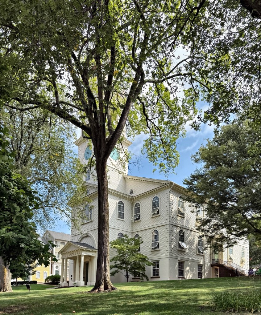 The First Baptist Church of Providence, also known as the First Baptist Church in America is the oldest Baptist church in the United States. The Church was founded in 1638 by Roger Williams, who before building this church in 1774, often met in private residences or in more plain meetinghouses to not show vanity. By the early 1770s, a new building for Providence Baptists was needed, and it was conceived in a very large (and ornate) way. Built to accommodate over 1,200 people (just under a third of the entire population of Providence at that time), this church was built “for the publick Worship of Almighty God; and also for holding Commencement”, referring to the commencement ceremonies of Rhode Island College (later Brown University), also founded under Baptist auspices. The church was designed by local amateur architect, Joseph Brown, who was likely inspired by Sir Christopher Wren’s London churches in James Gibbs’s Book of Architecture (1728). The construction was greatly aided by the fact that the British had closed the port of Boston as punishment for the Boston Tea Party. Many shipwrights and carpenters were thrown out of work and came to Providence to build the meetinghouse there. The structure was dedicated in May 1775, and the 185-foot steeple was added shortly thereafter. This was the first Baptist meetinghouse in New England to have a steeple, and it has survived dozens of hurricanes and hundreds of years of change since. The church is a National Historic Landmark and remains as one of the most significant buildings in New England.