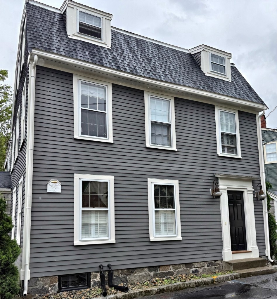 Joshua Orne (1708-1772) was born in Marblehead and attended local schools there. He would marry Sarah Gale, and they had one son together, Azor Orne, who would become a merchant, politician and patriot, fighting in the American Revolution. Sarah Gale died in 1743 and Joshua would remarry to Annis Stacey, having one child together, Joshua Orne Jr., who was a Patriot and fought in the Revolution, fighting alongside his half-brother, Azor. Joshua Orne and Annis owned a c.1663 house on this site and appear to have completely rebuilt the house or greatly modernized it around 1750. Joshua was a cordwainer and shipowner and later got involved with discussions of revolution and liberation from England. He likely inspired his sons to follow-suit and shared the same beliefs and values, though Joshua Sr. would die in 1772, not seeing the beginning of the War, nor freedom from tyranny. The house would be inherited by Joshua Jr. and later deeded to his son-in-law, John Bubier Prentiss, a shipmaster, who likely added the Federal period doorway and pedimented dormers.