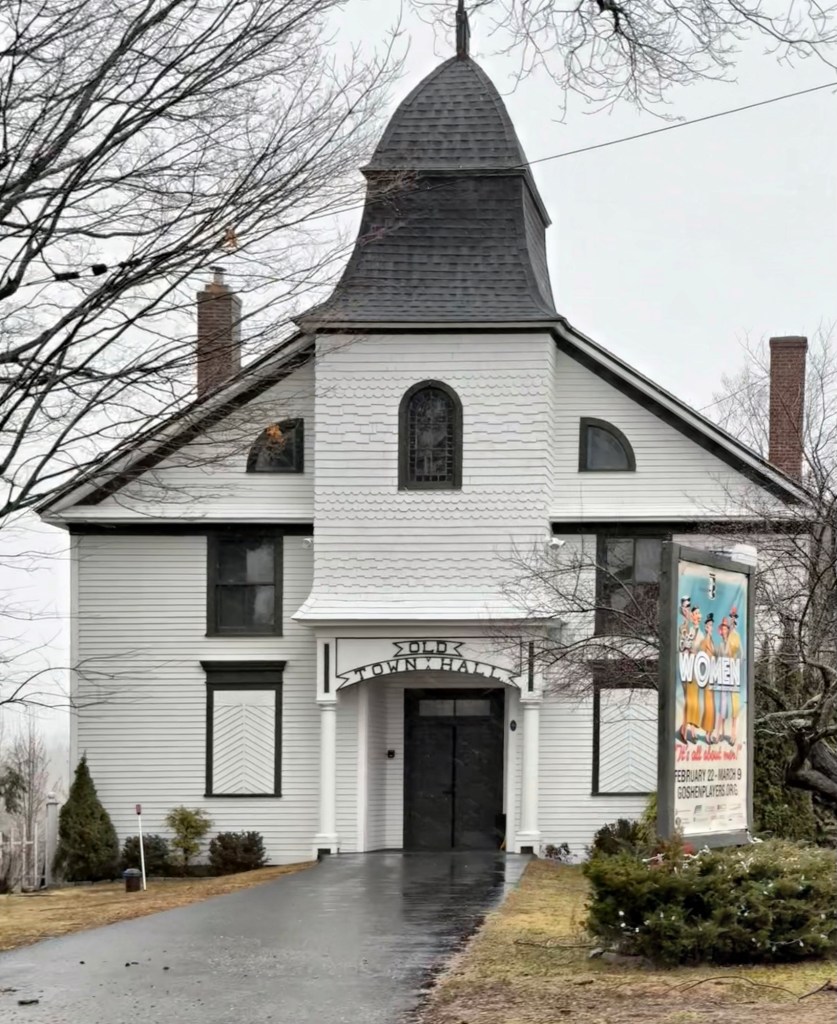The first purpose-built official town building of Goshen, Connecticut, was this wood-frame structure at the main junction in the central village as the town’s first town hall. Built in 1895, the structure originally housed offices for the selectmen and town clerk, a fireproof vault for records, and a large audience-room with stage for town meetings and ceremonies. The building employs a more traditional form similar to the old Greek Revival meetinghouses built in New England in the first half of the 19th century, but with a shingled, Victorian entry tower with bell roof. When the Town of Goshen moved into its present town hall building, this structure became the home to the Goshen Players, a community theatre established in 1949, and is the second oldest continuously performing theatre group in the state.